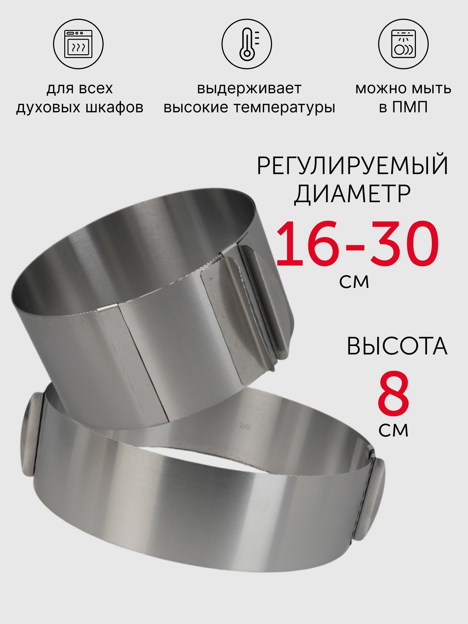 Форма раздвижная регулируемая 16-30 см, для тортов, пирогов и салатов нержавеющая сталь, высота 8 см интересное:
