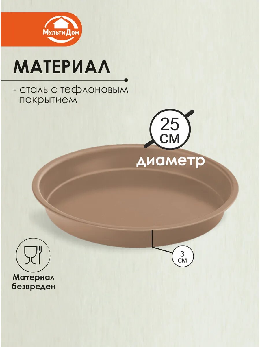 Форма для выпечки кулинарная круг диаметр 26 см, высота бортика 3 см. Углеродистая сталь с тефлоновым покрытием. интересное: