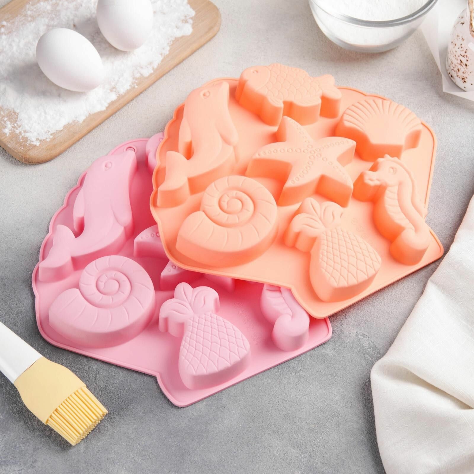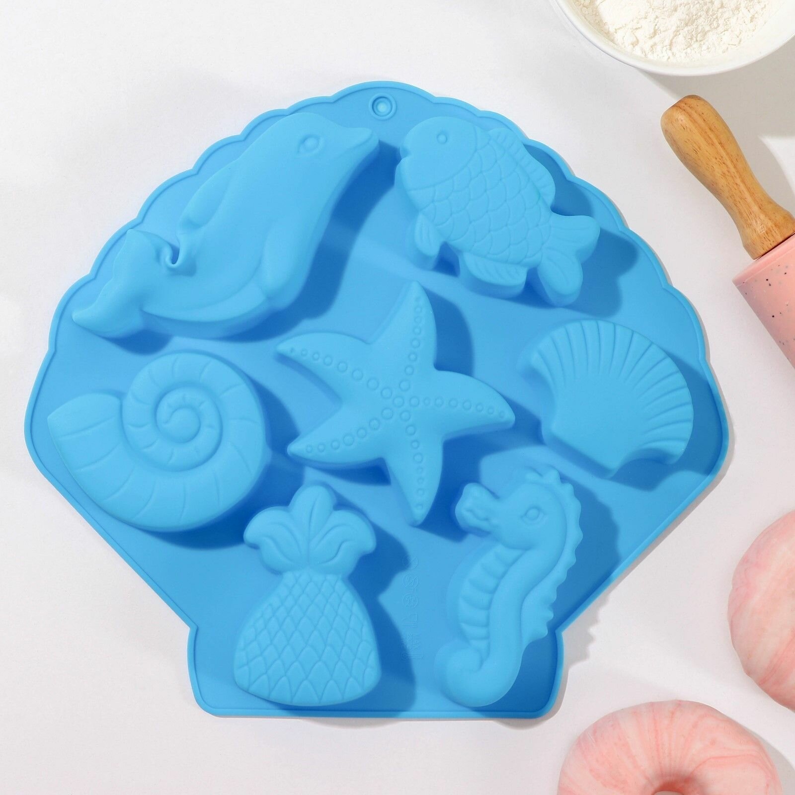 Купить Форма силиконовая для выпечки Доляна «Морские обитатели», 26×24×2,5 см, 7 ячеек, цвет микс