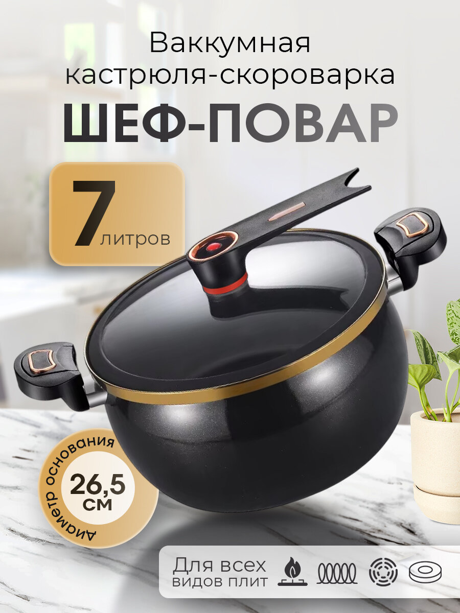 Вакуумная кастрюля скороварка Шеф-повар Мой Мир, цвет черный интересное: