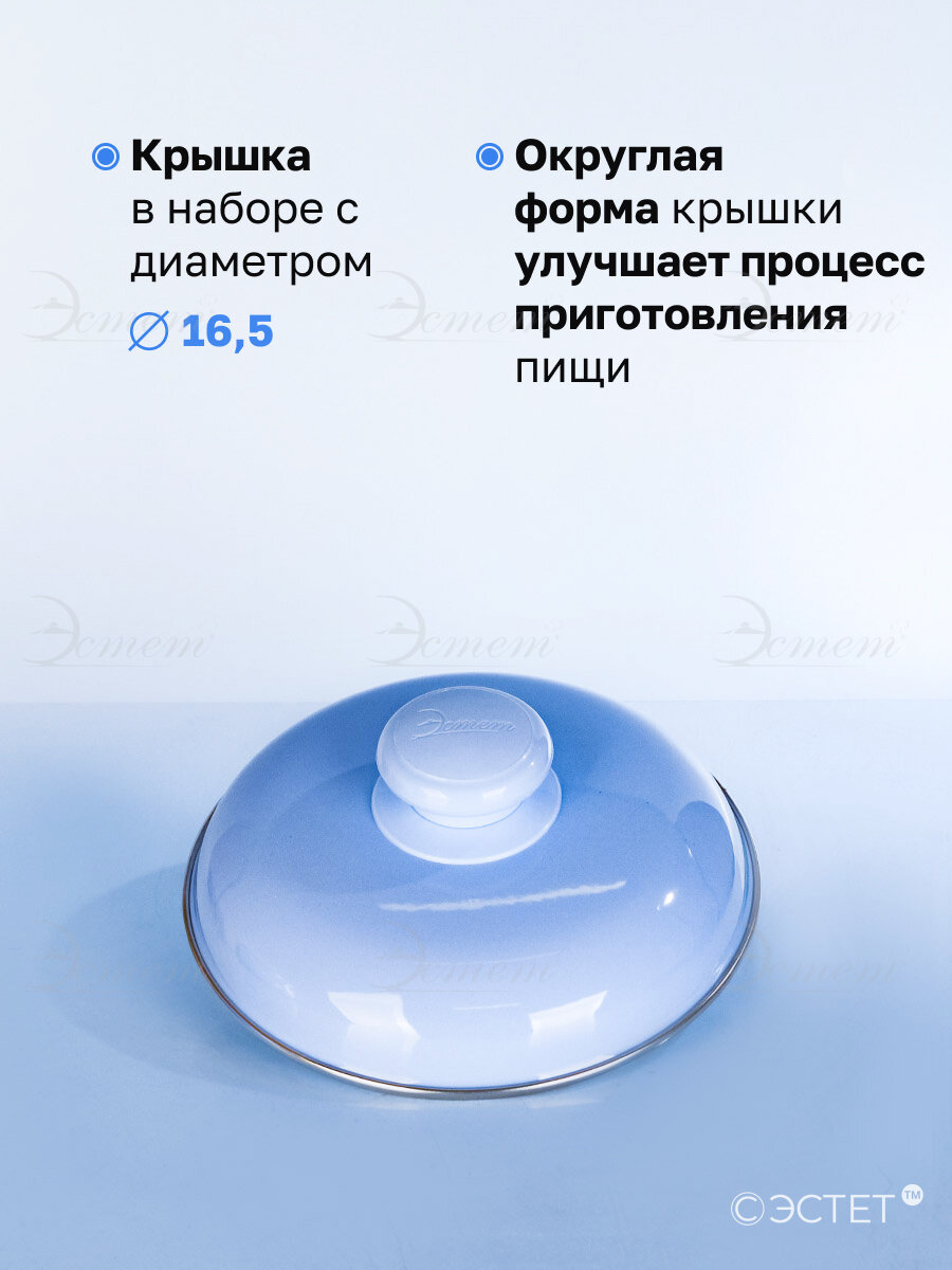 Кастрюля Эстет 2 литра, голубая, стальная, с крышкой, подходит для индукции интересное: