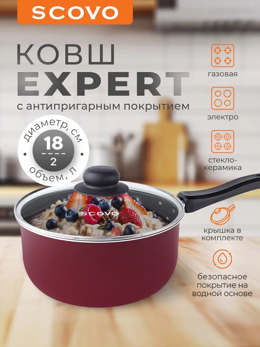 Ковш с крышкой 2 л с антипригарным покрытием Scovo Expert, с фиксированной ручкой интересное: