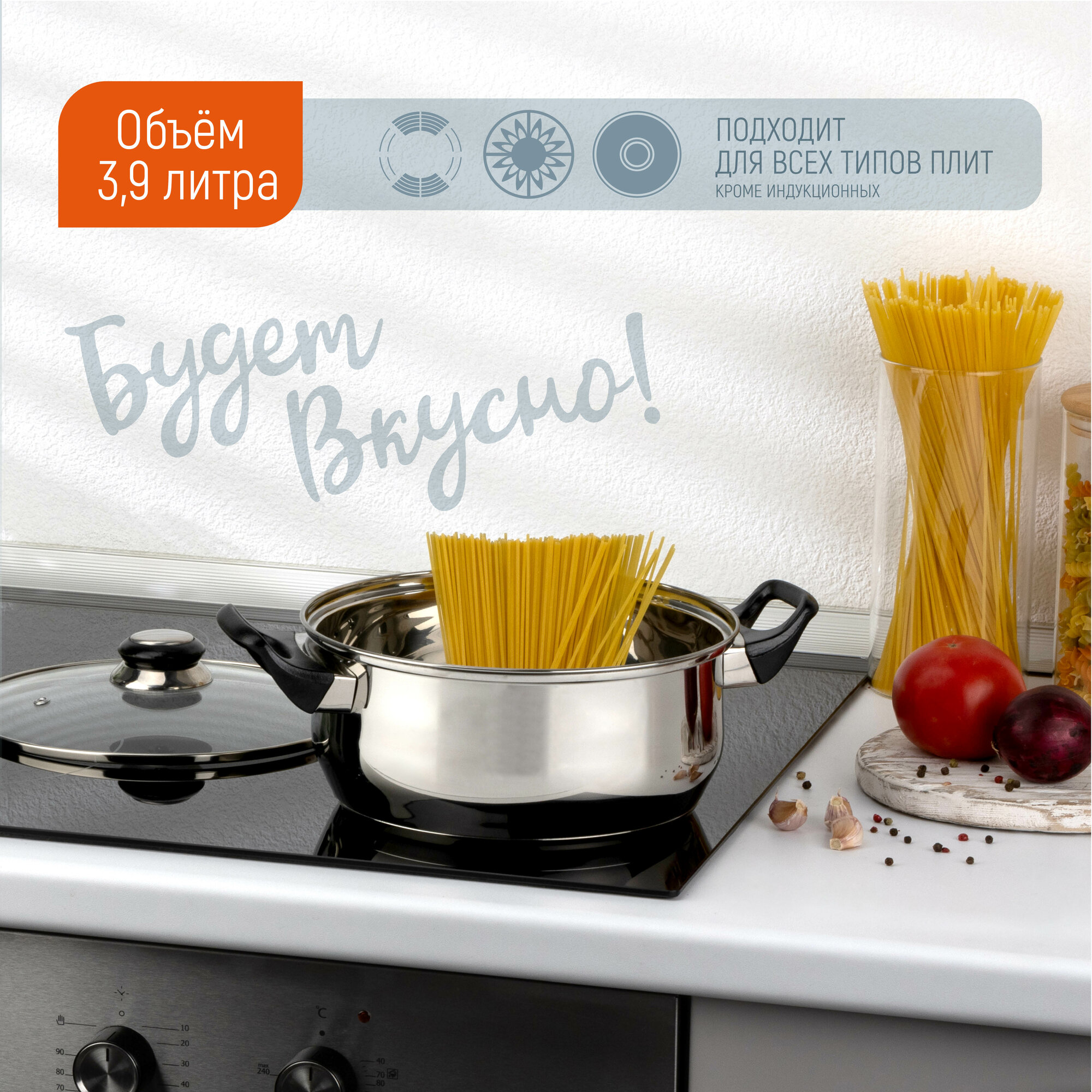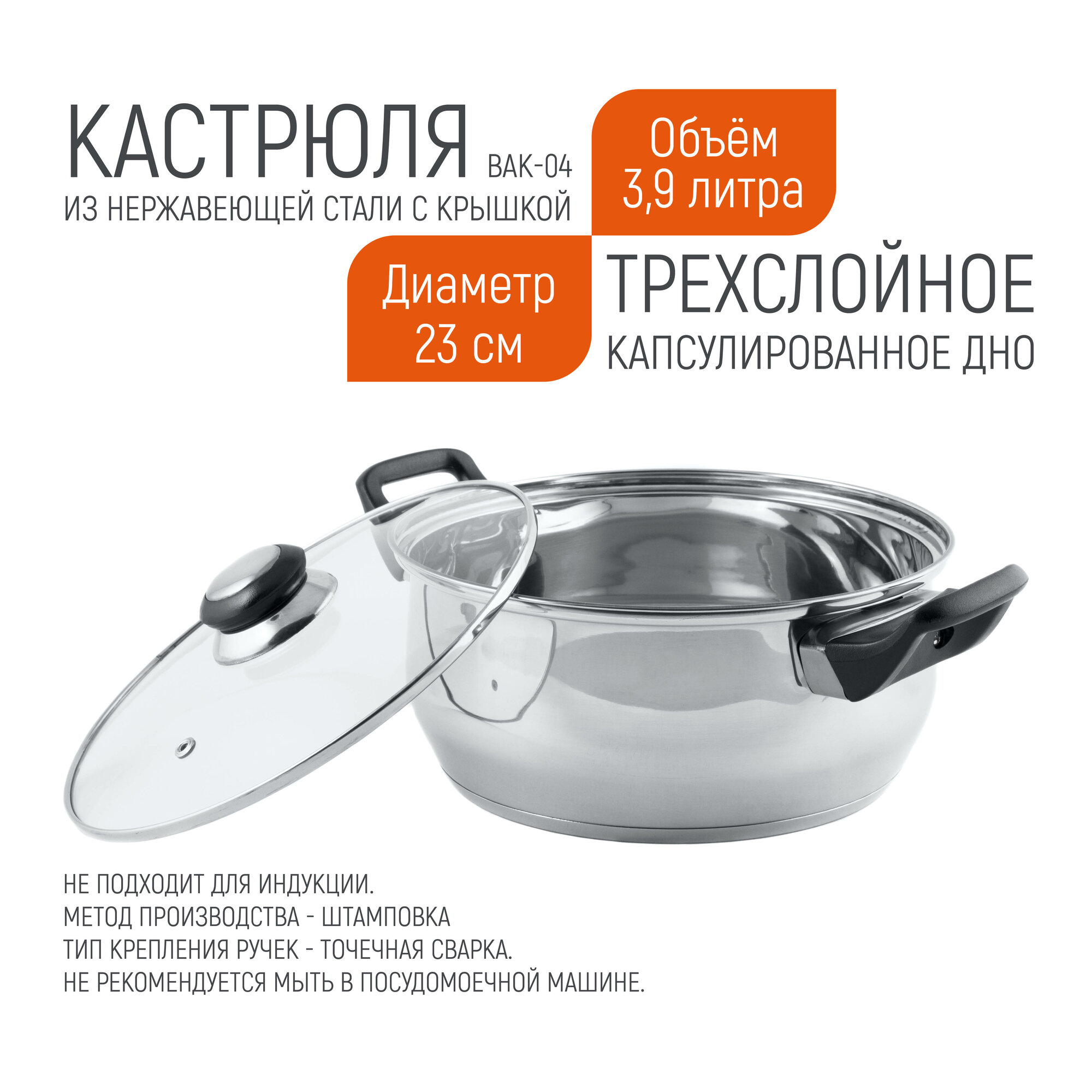 Кастрюля из нержавеющей стали с крышкой BAK, 3.9 л, 3-слойное капсулированное дно интересное: