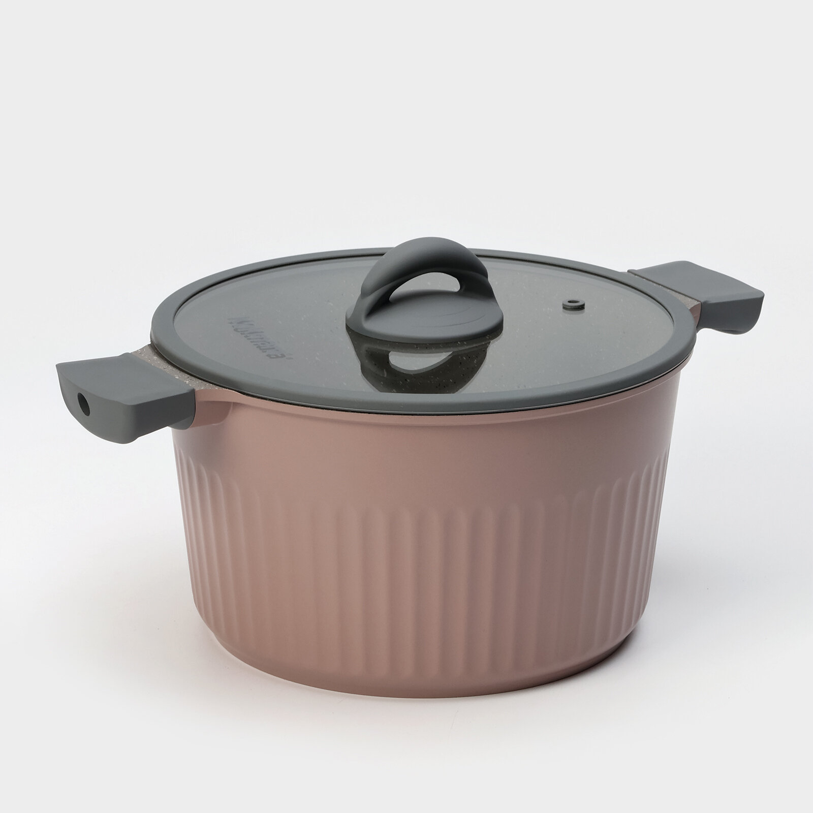 Кастрюля-жаровня с крышкой 3 л KUKMARA Trendy style rose ж31tsr литая, с антипригарным покрытием, розовый