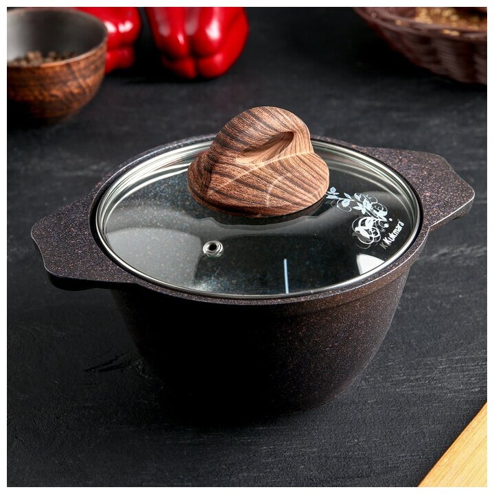 Кастрюля KUKMARA Granit ultra, 8 л, стеклянная крышка, антипригарное покрытие, коричневый мрамор