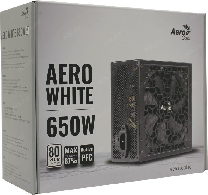Блок питания Aerocool AERO WHITE, 650Вт, 120мм, черный, retail [aero white 650]
