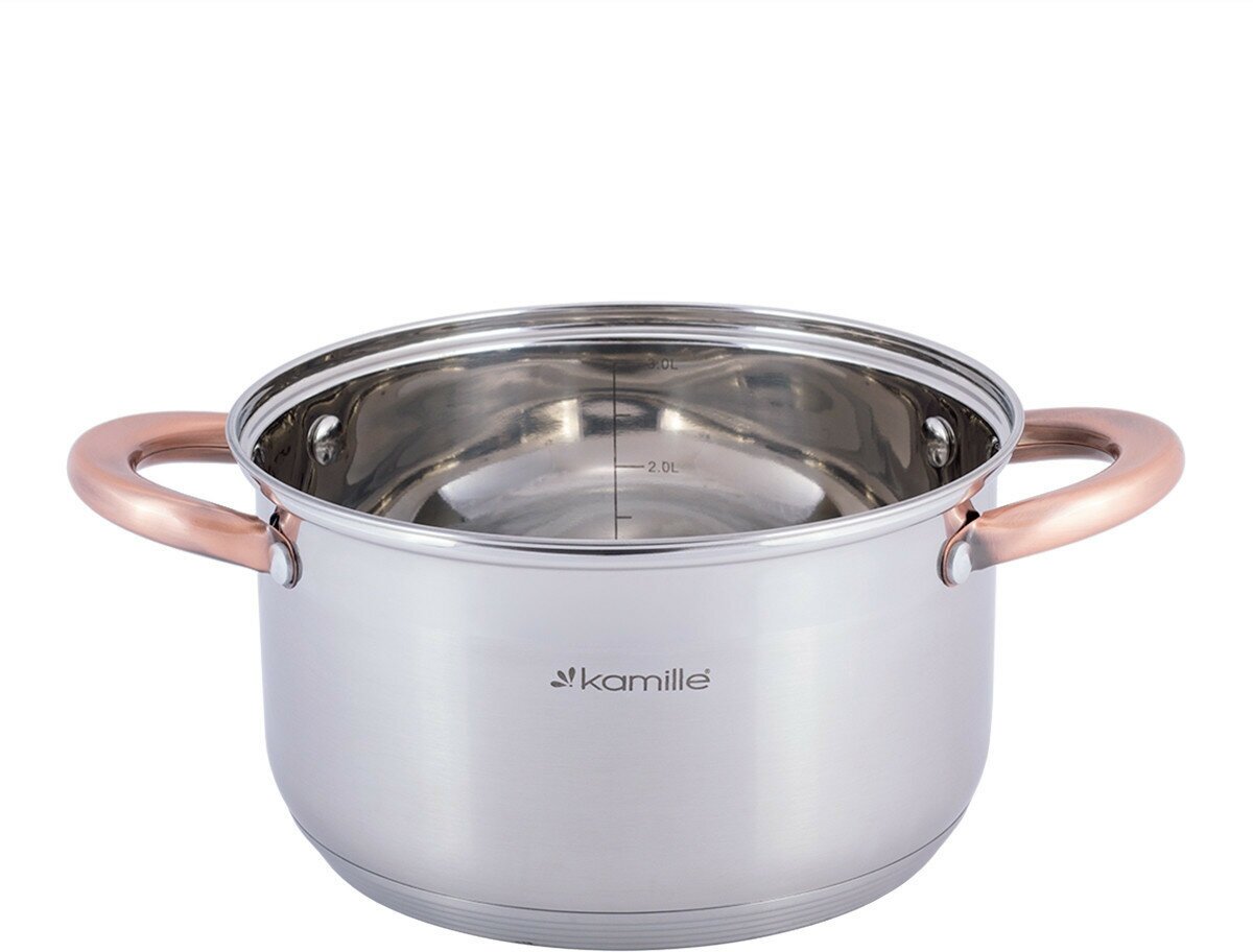 Кастрюля 4,5 л. из нержавеющей стали Kamille KM 4933 с медными ручками (4,5 л. / серебристый)
