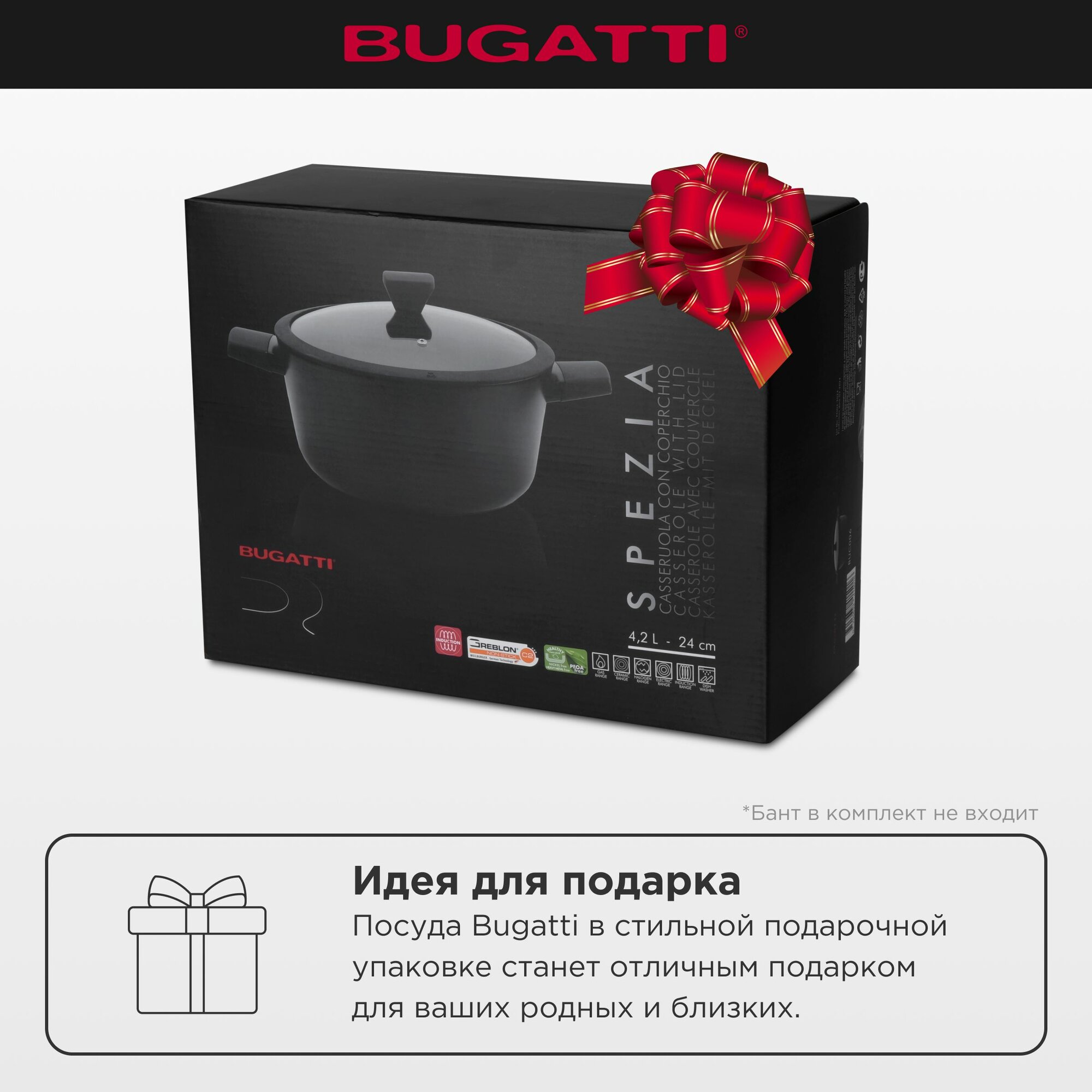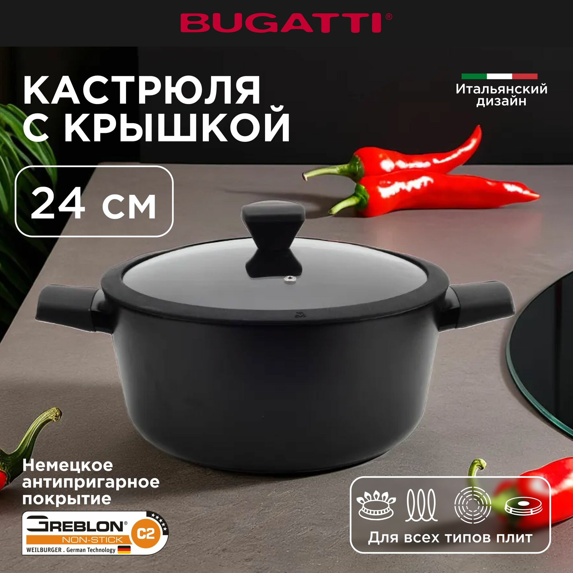 Кастрюля Bugatti с крышкой для индукционных плит 4 л, 24 см интересное: