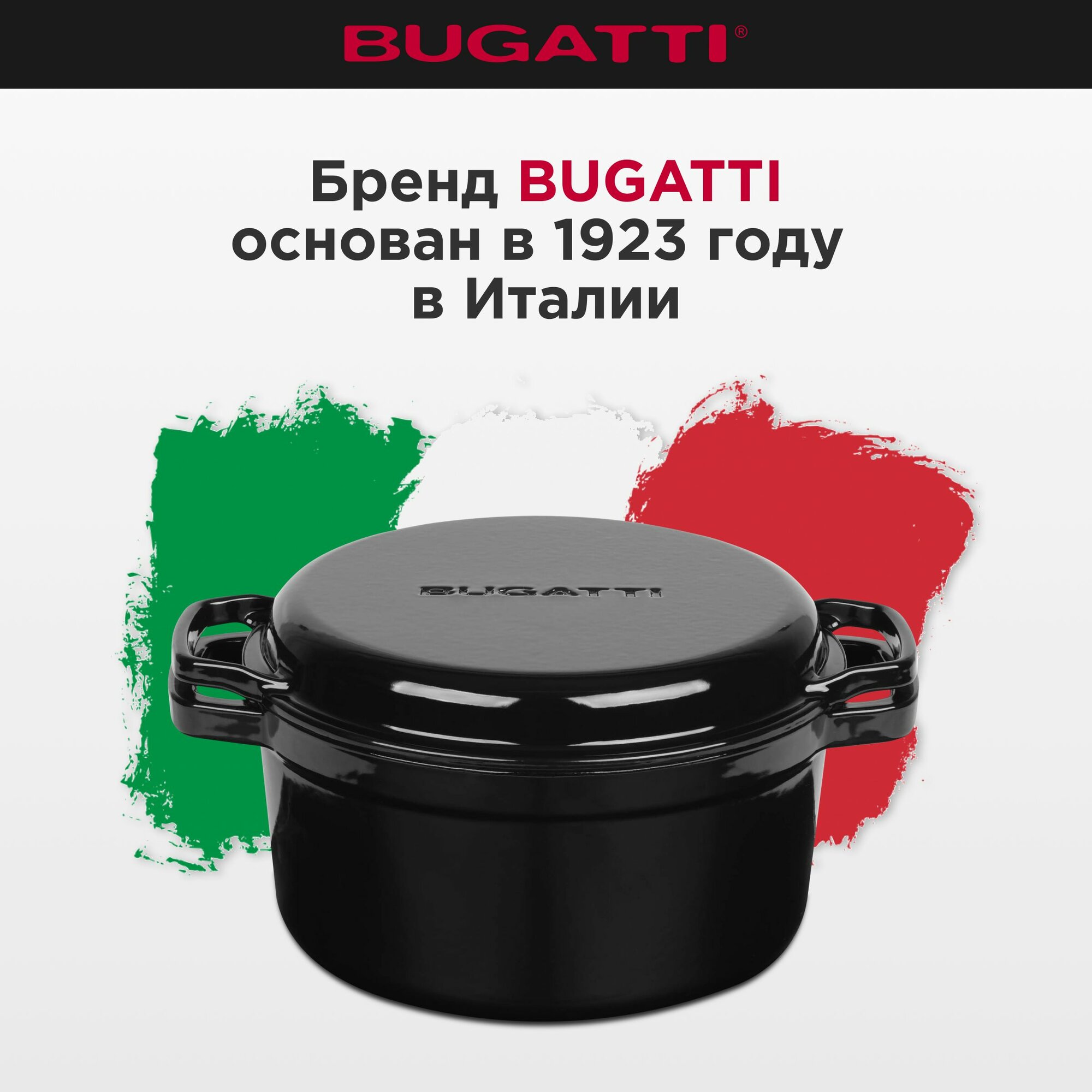 Кастрюля чугунная Bugatti, эмалированная, круглая с крышкой сковородой, 24 см, 4 л
