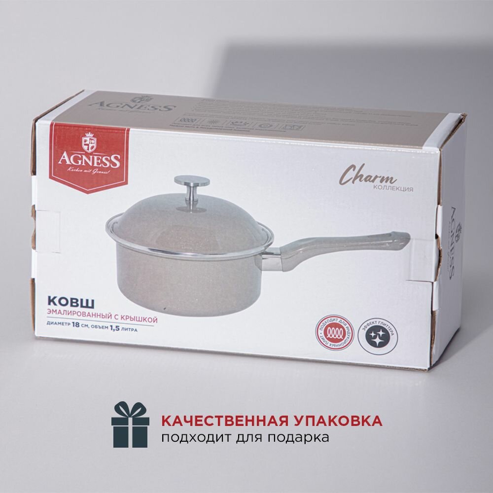 Ковш Agness "Charm", 1,5 л, эмалированный, с крышкой, для всех видов плит, 18 х 8 см интересное: