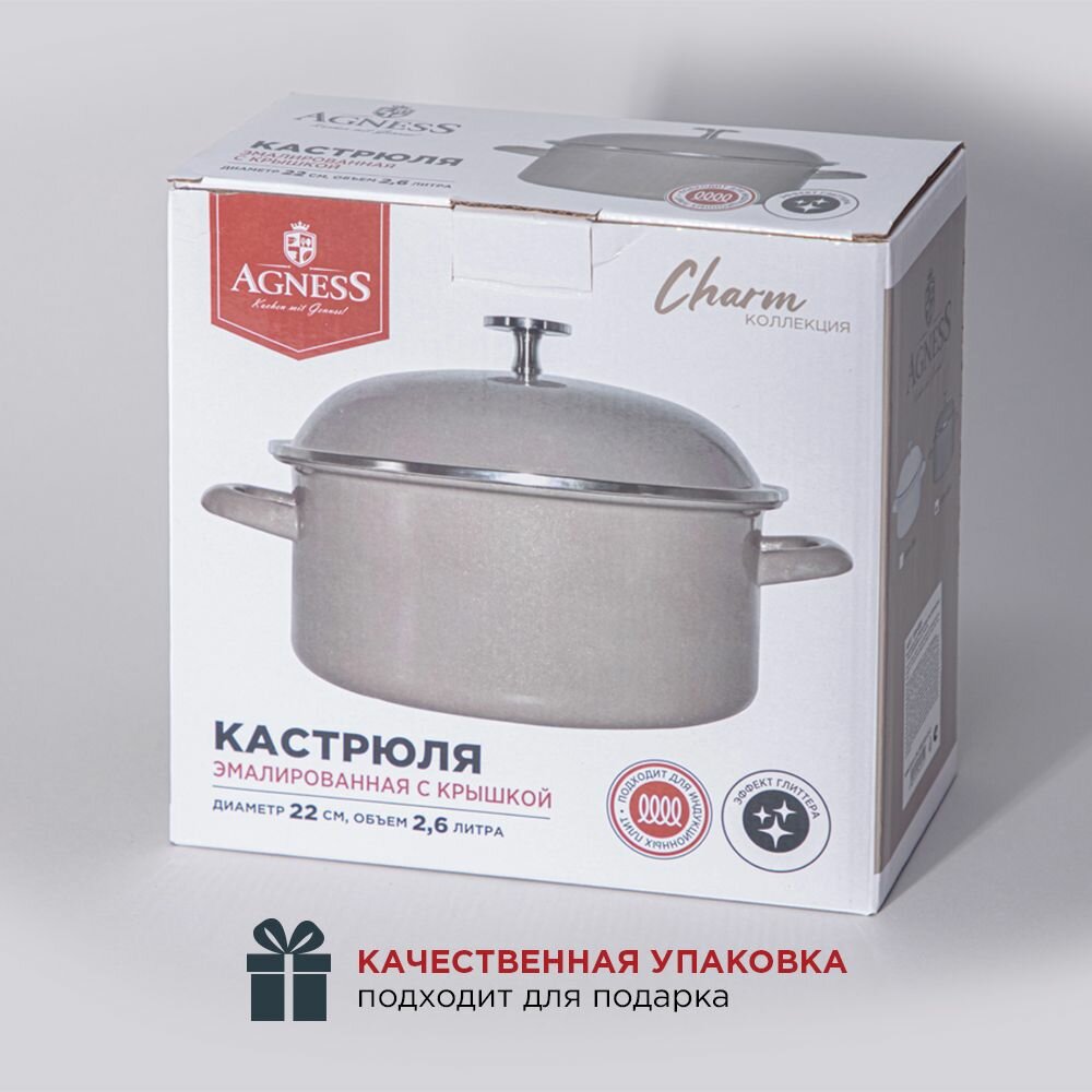 Кастрюля эмалированная 3,5 литра Agness "Charm" для всех видов плит 22 х 12,5 см, с эффектом металлика