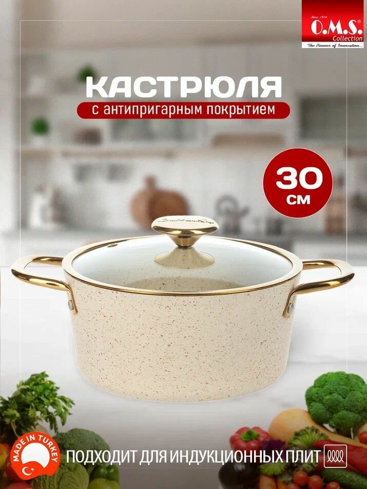 Кастрюля антипригарная O.M.S. Collection с крышкой 28 см для индукционной плиты