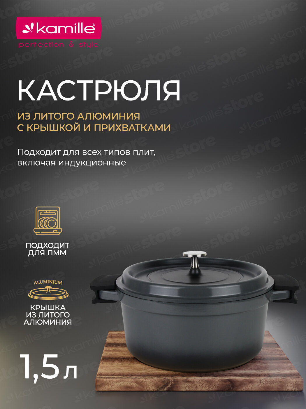 СохранитьКастрюля 1,5 л. Kamille KM 4455 серия FRANCE из литого алюминия с антипригарным покрытием (1,5 л. / серый) интересное:
