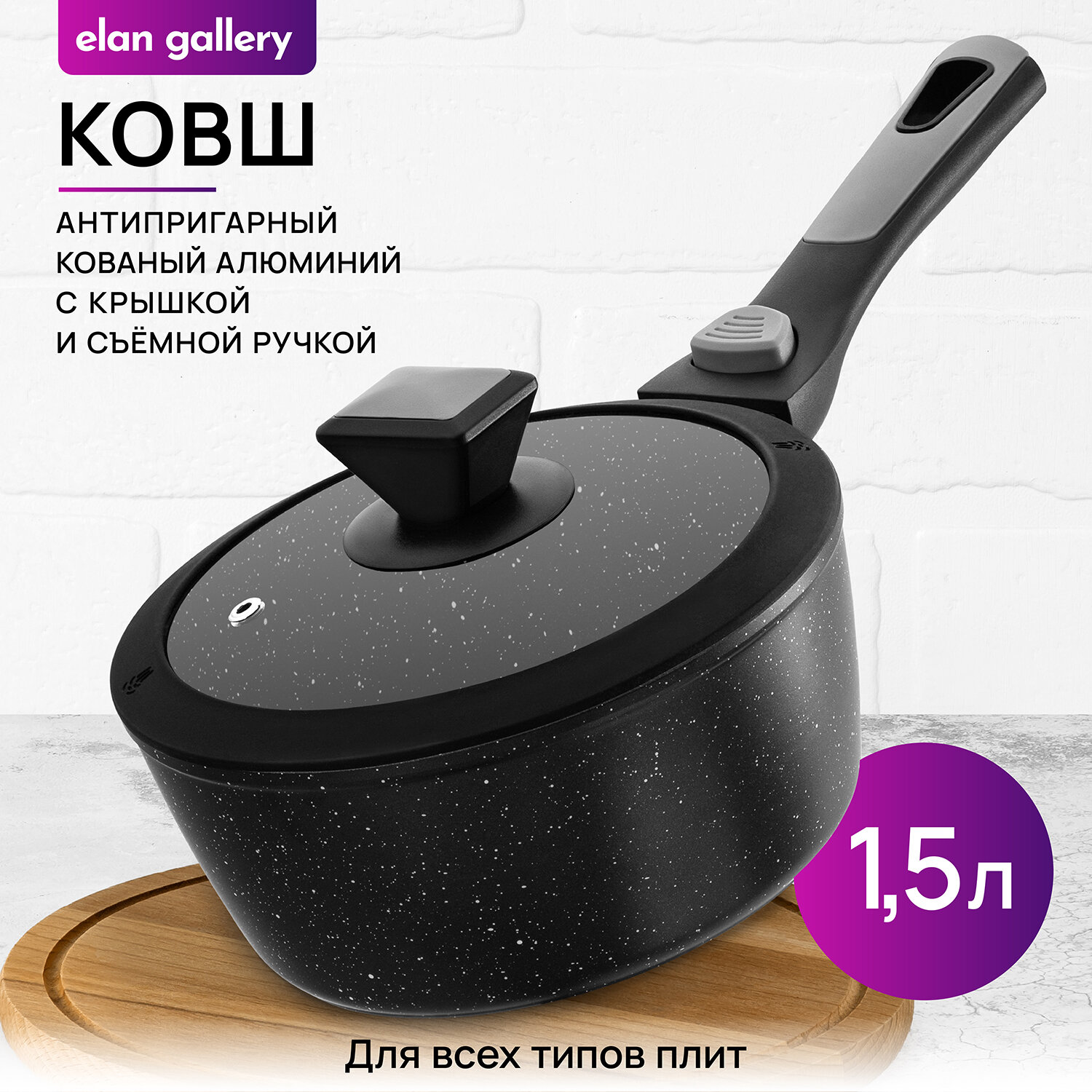 Ковш 1,5 л Elan Gallery FIERRA Черный мрамор, индукция, с крышкой ф19, со съемной ручкой интересное: