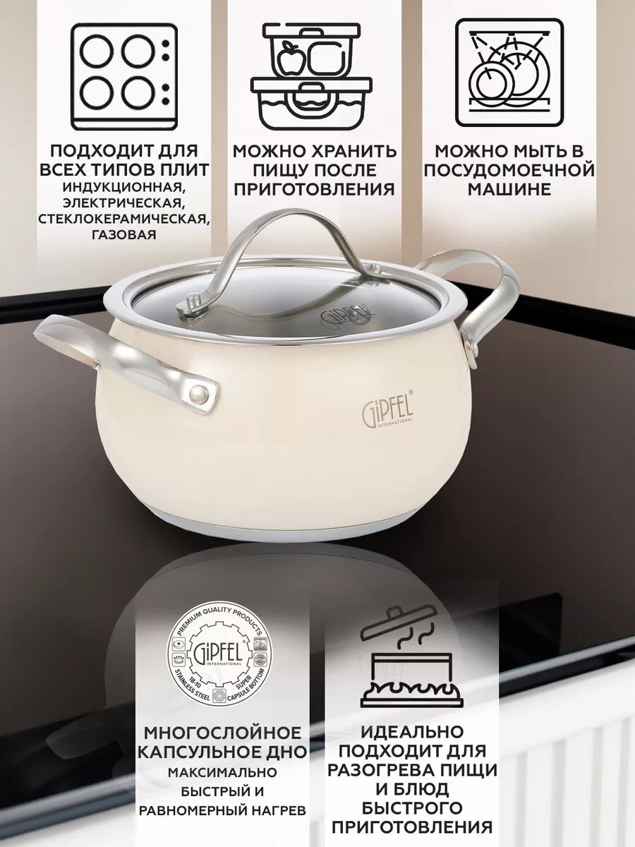 Кастрюля из нержавеющей стали Gipfel Novella 52291 20 см/4 л бежевый интересное: