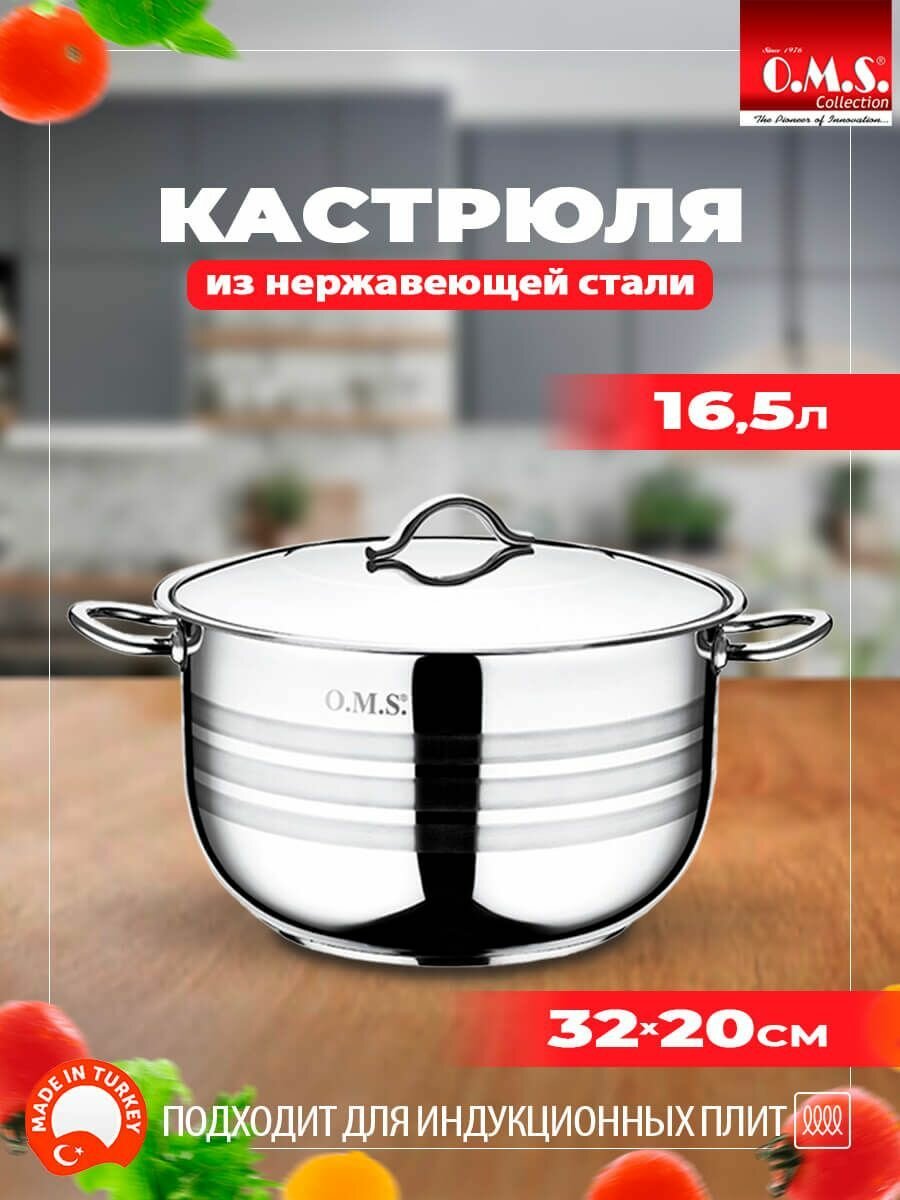 Купить Кастрюля O.M.S.Collection, нержавеющая сталь, серебристый, с крышкой, для индукции, 16,5л