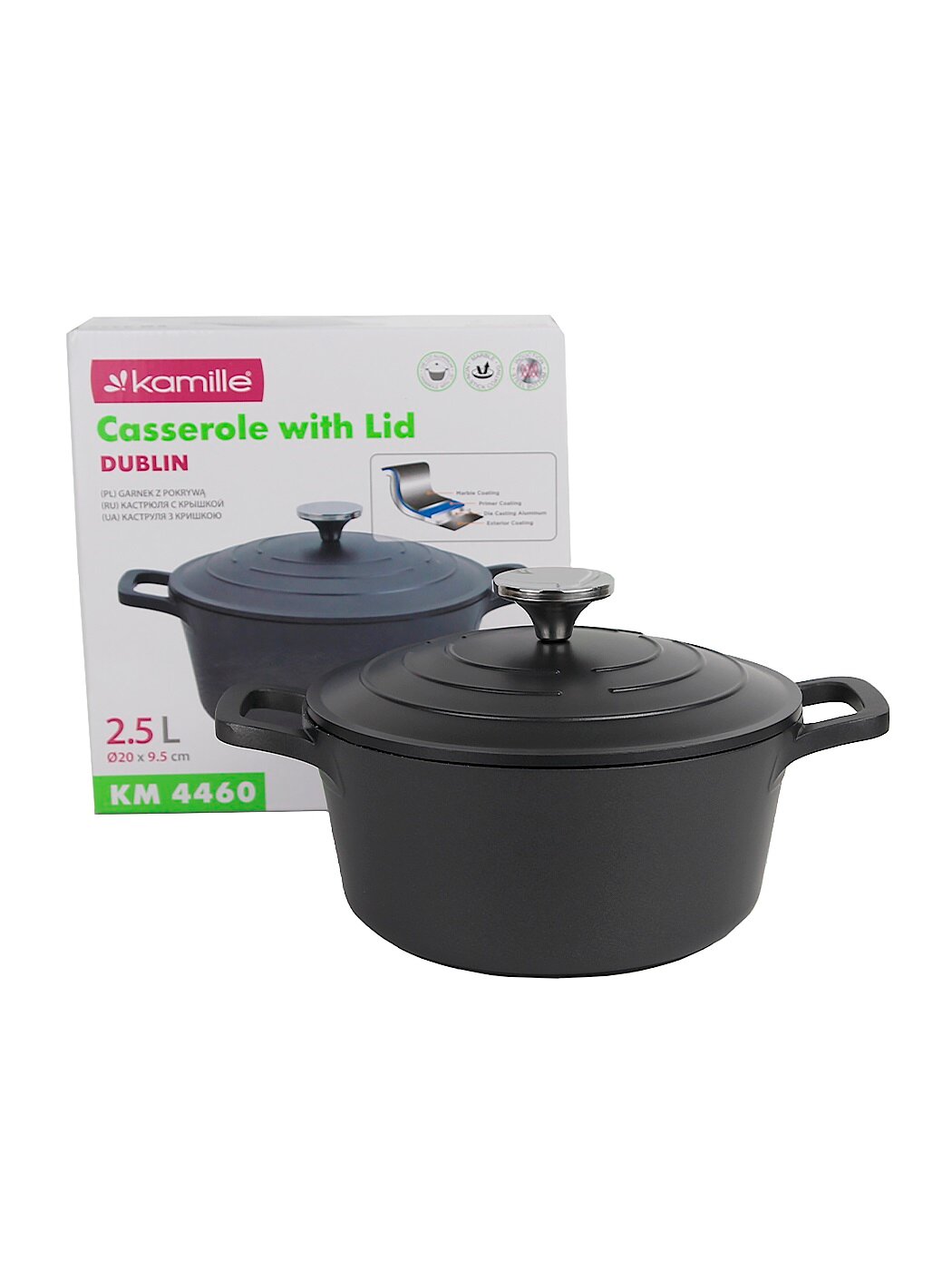 Кастрюля 4,5 л. Kamille KM 4461 серия DUBLIN из литого алюминия с антипригарным покрытием с крышкой (4,5 л. / черный)