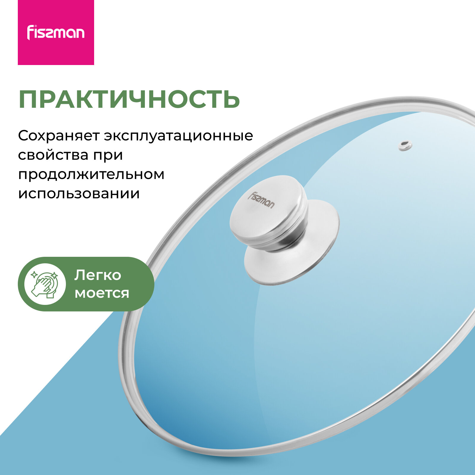 Крышка стеклянная cо стальным ободком универсальная 28 см Fissman интересное: