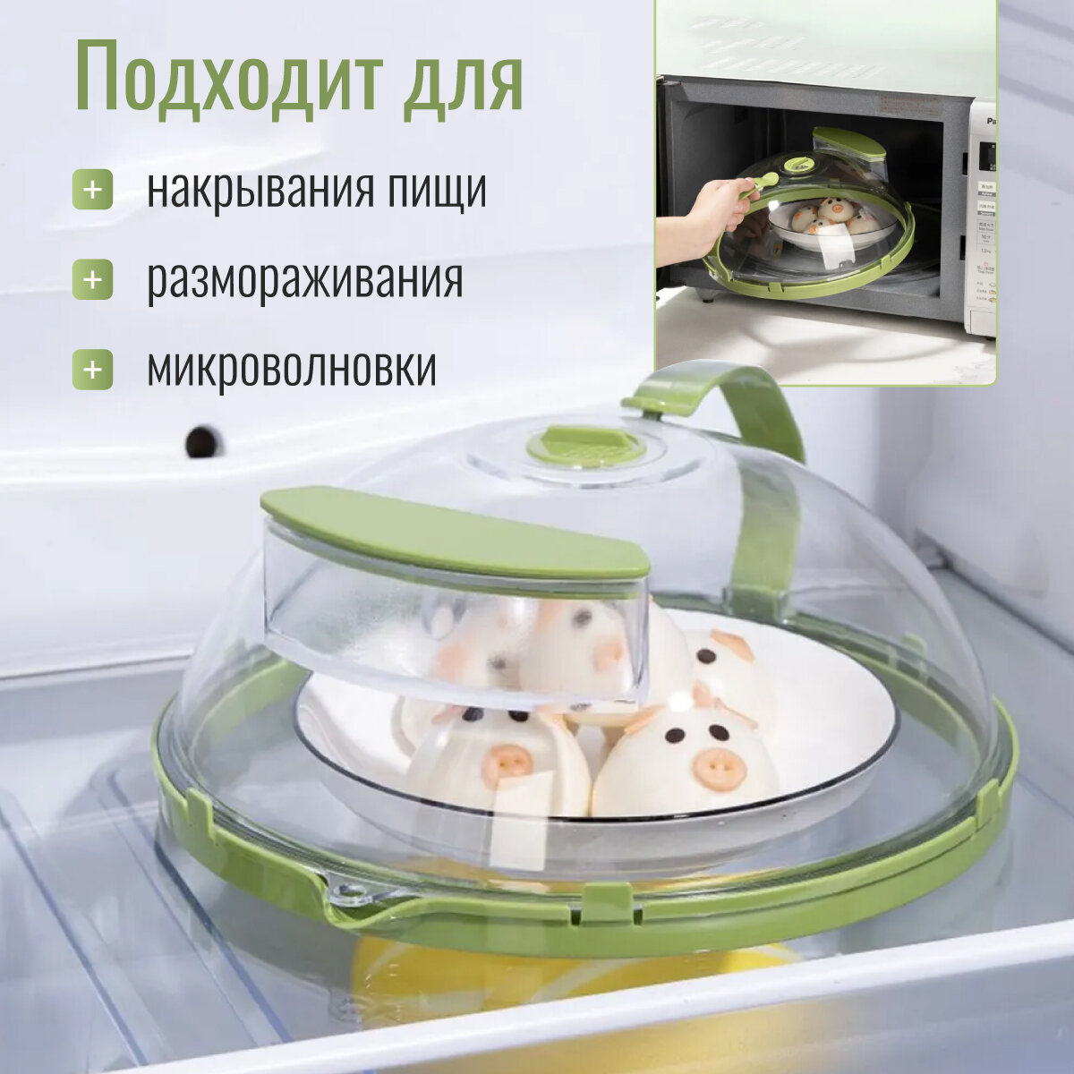Крышка для микроволновой печи с отсеком для воды и ручкой для удобной установки интересное:
