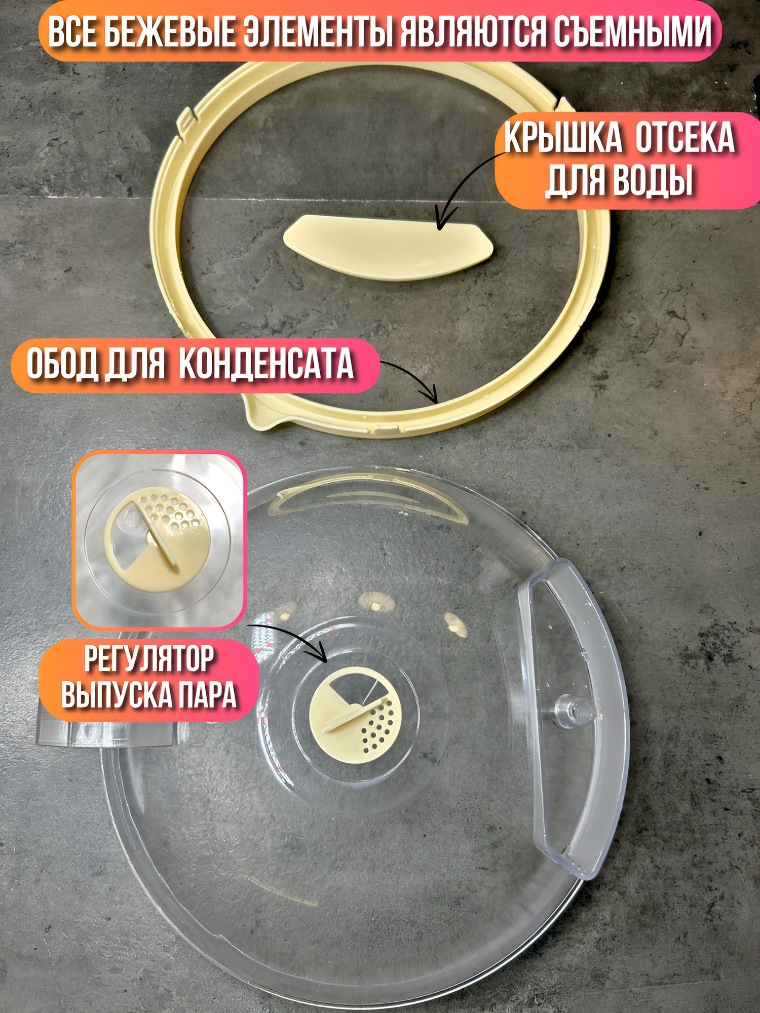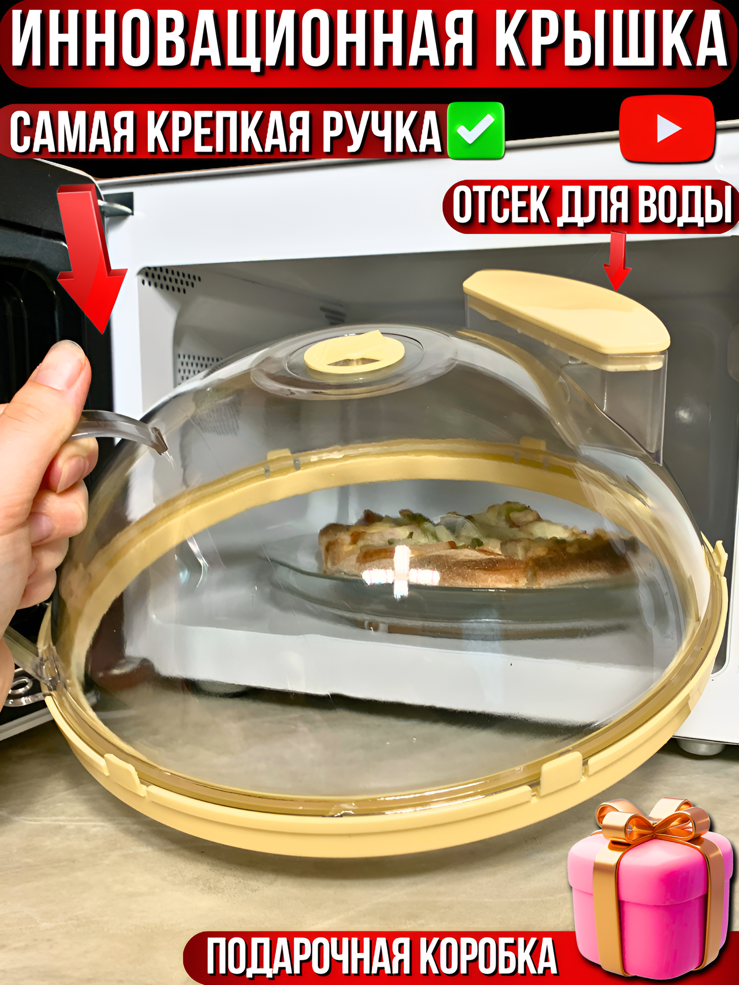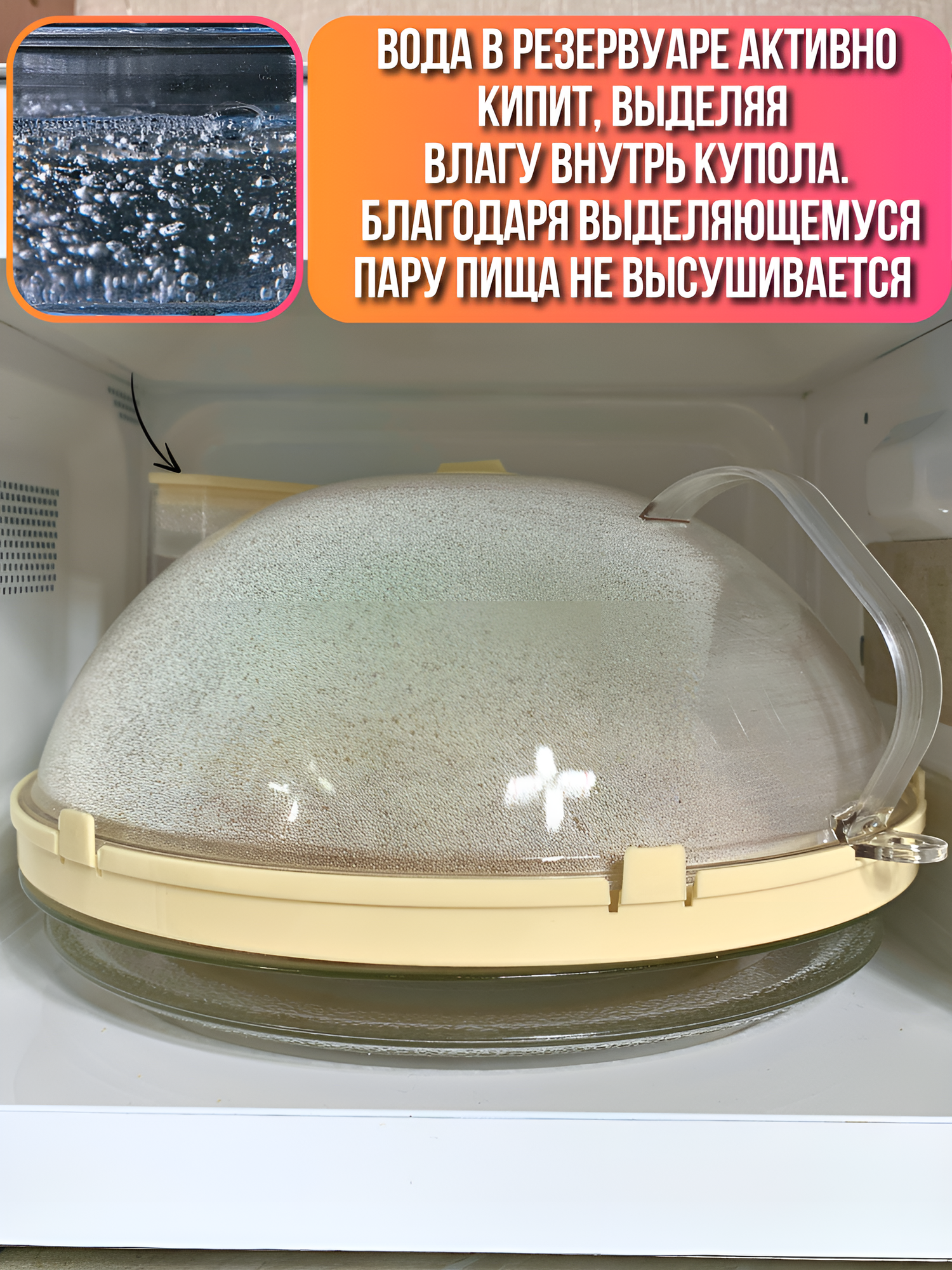 Крышка для микроволновой печи, с отсеком для воды, пищевой поликарбонат, бежевая. интересное: