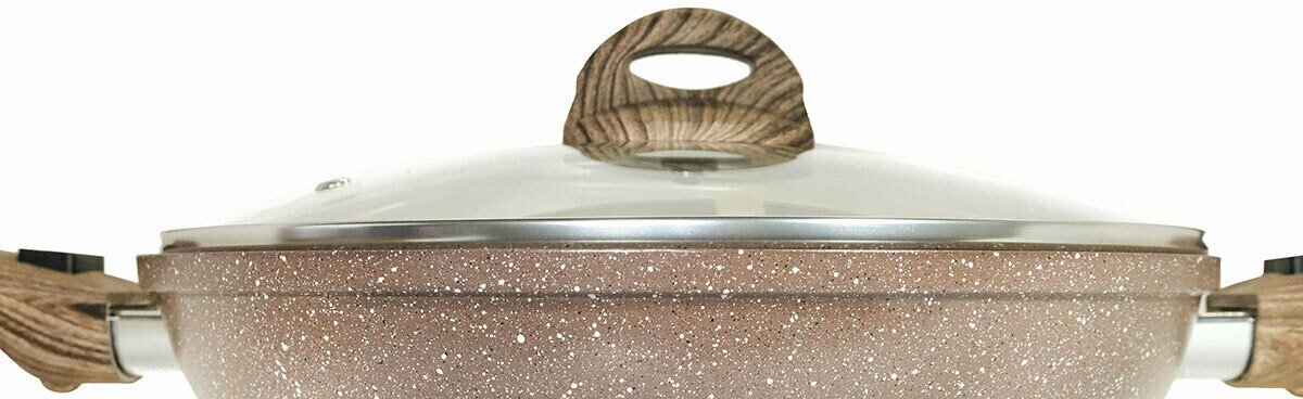 Крышка стеклянная Panairo с ручкой Soft-touch WOOD 28см
