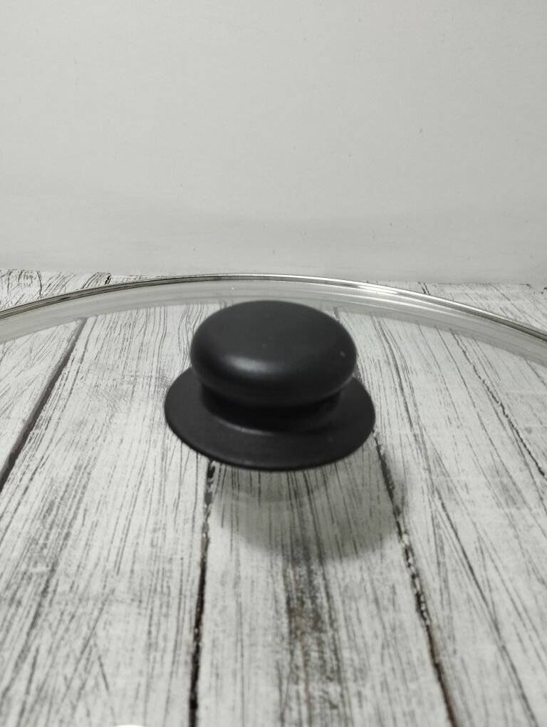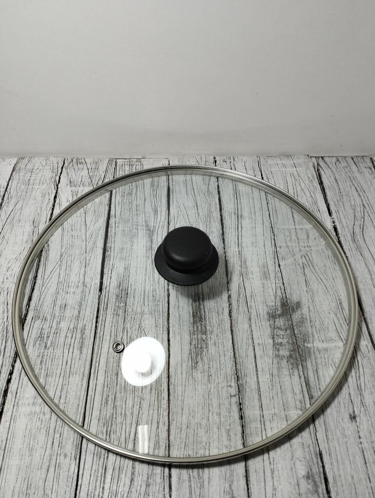 Крышка стеклянная 30см для сковороды, кастрюли, с металлическим ободом с пластиковой ручкой в комплекте