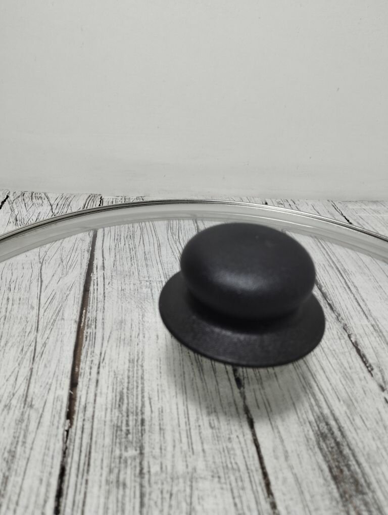 Крышка стеклянная 30см для сковороды, кастрюли, с металлическим ободом с пластиковой ручкой в комплекте
