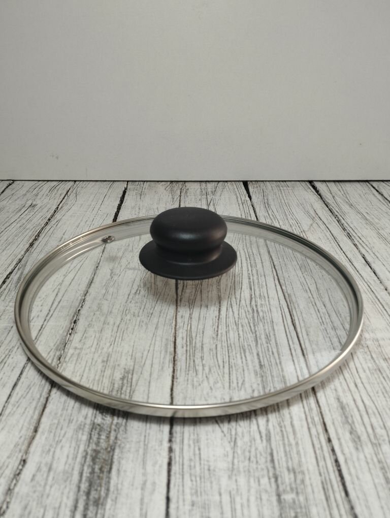 Крышка стеклянная 30см для сковороды, кастрюли, с металлическим ободом с пластиковой ручкой в комплекте