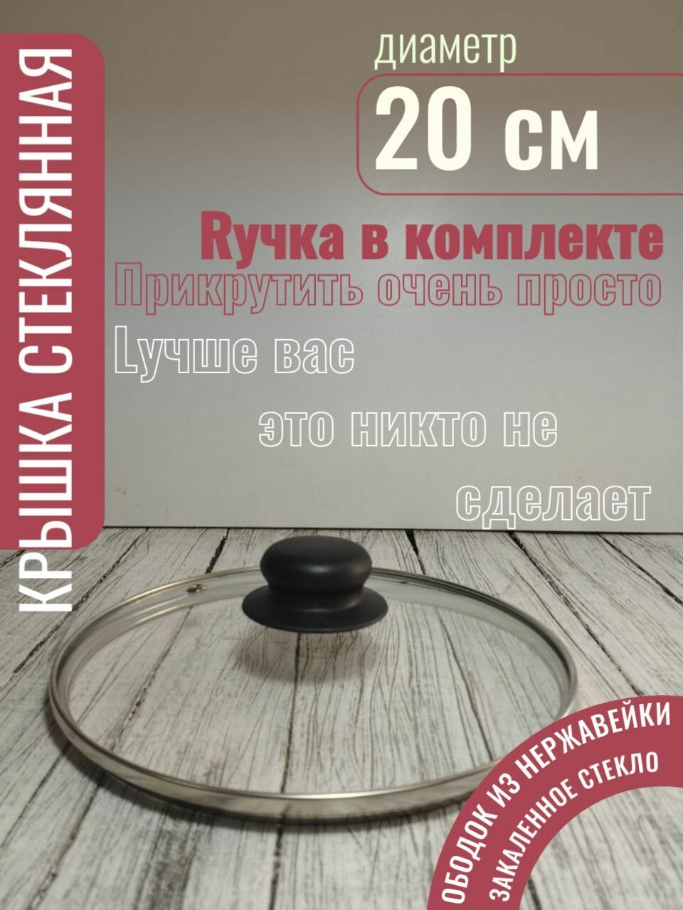 СохранитьКрышка стеклянная 20см для сковороды, кастрюли, с металлическим ободом, с пластиковой ручкой в комплекте интересное: