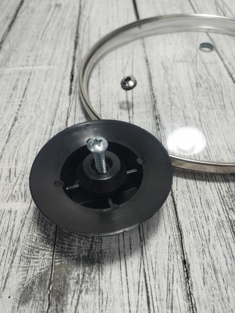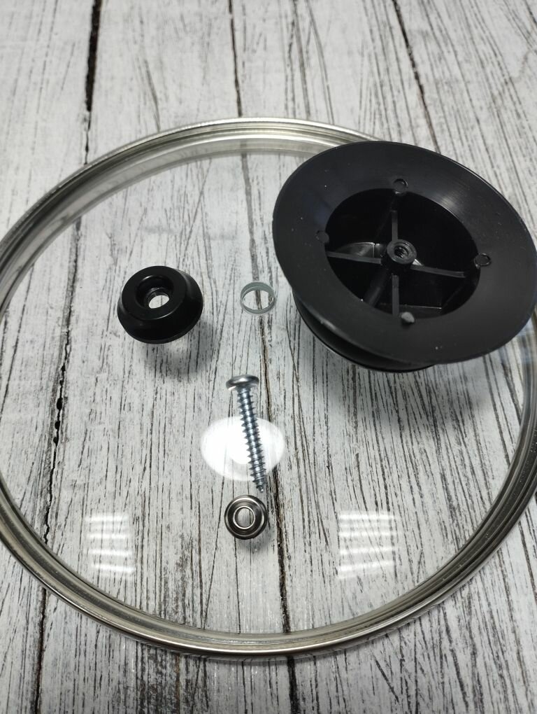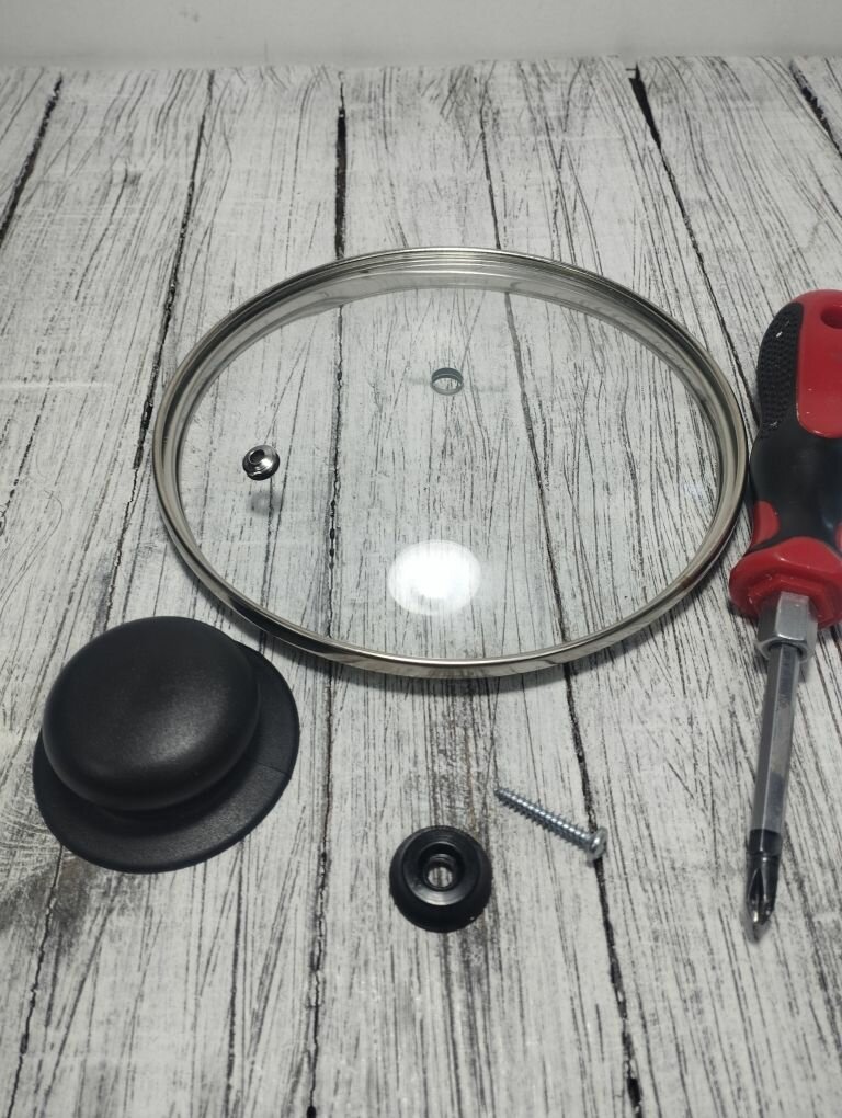 Крышка стеклянная 30см для сковороды, кастрюли, с металлическим ободом с пластиковой ручкой в комплекте
