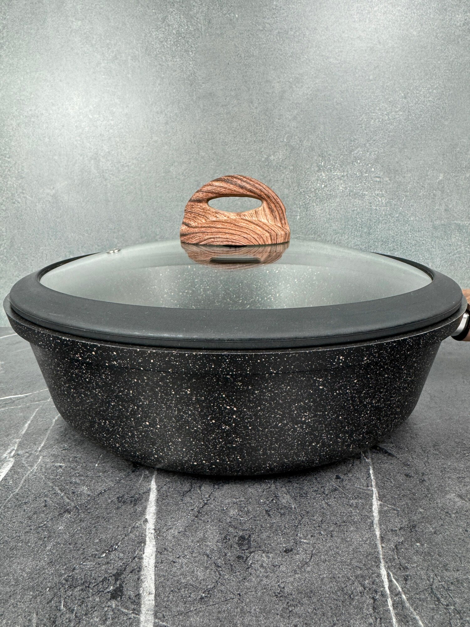 Стеклянная крышка 16см Panairo "WOOD" с ручкой Soft-touch
