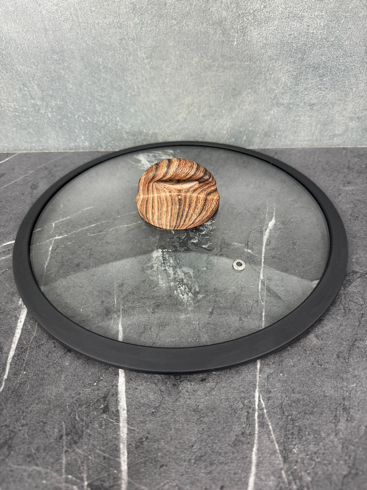 Стеклянная крышка 16см Panairo "WOOD" с ручкой Soft-touch