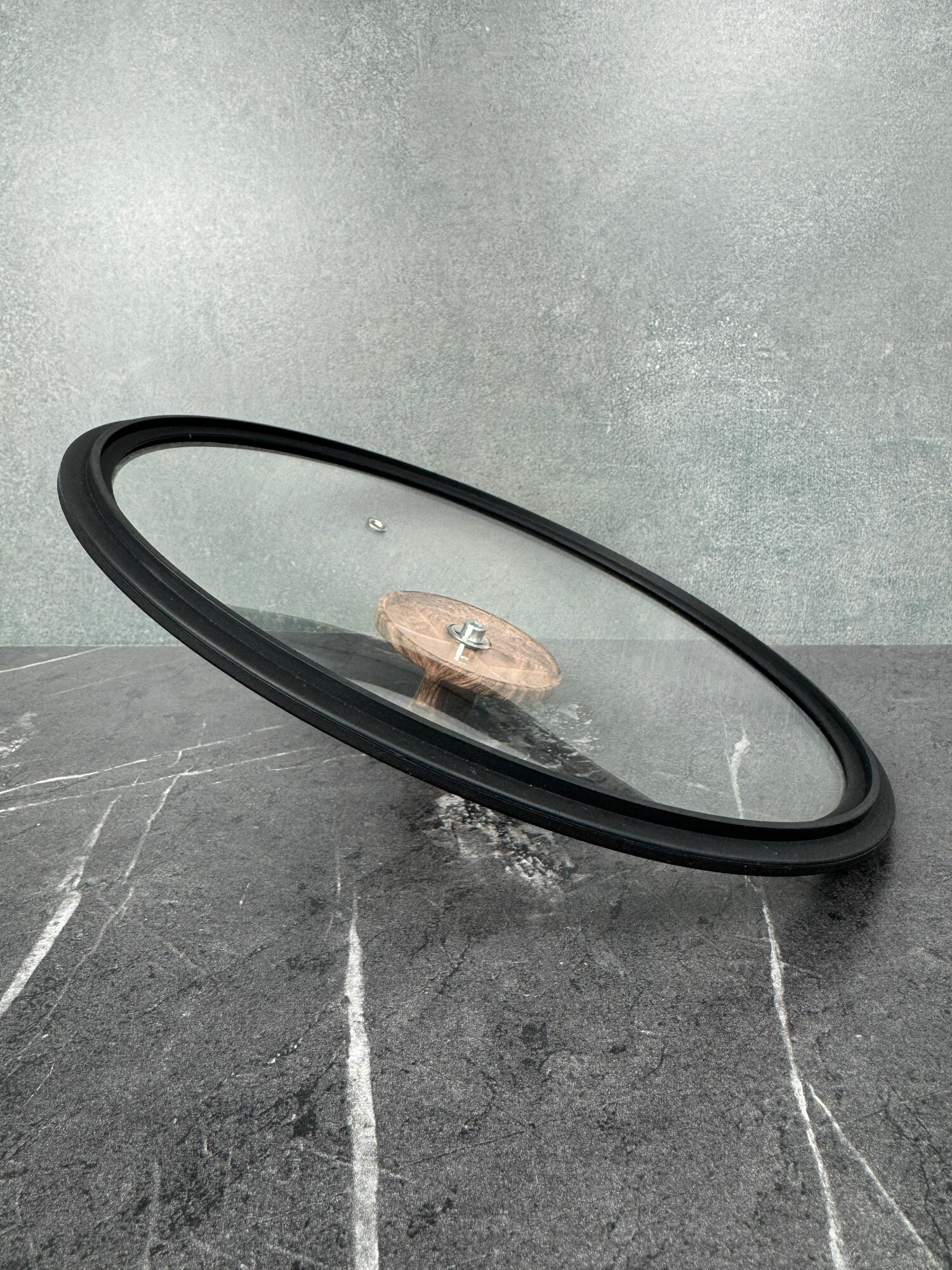 Стеклянная крышка 26 см с силиконовыми ободом и ручкой Panairo