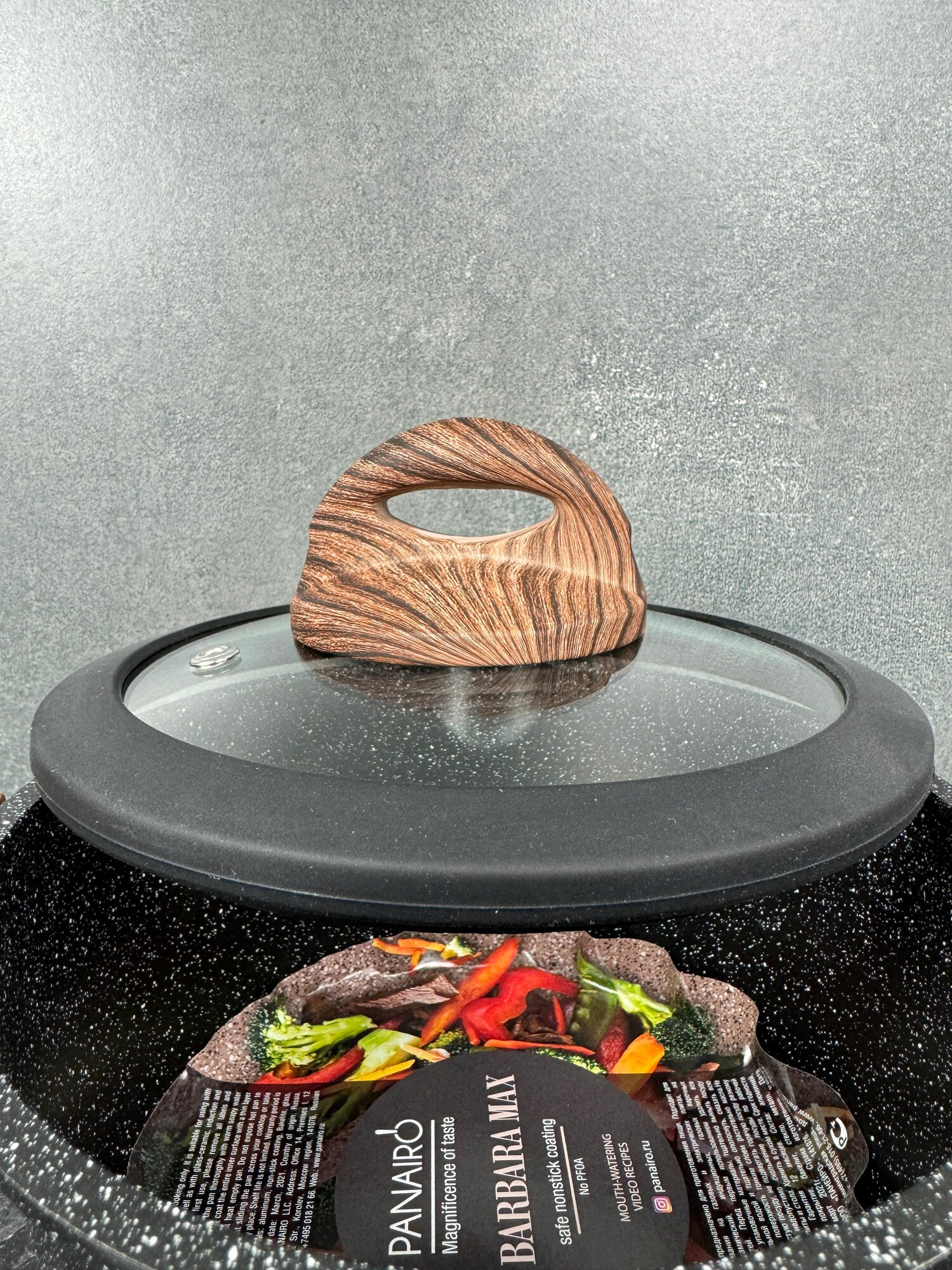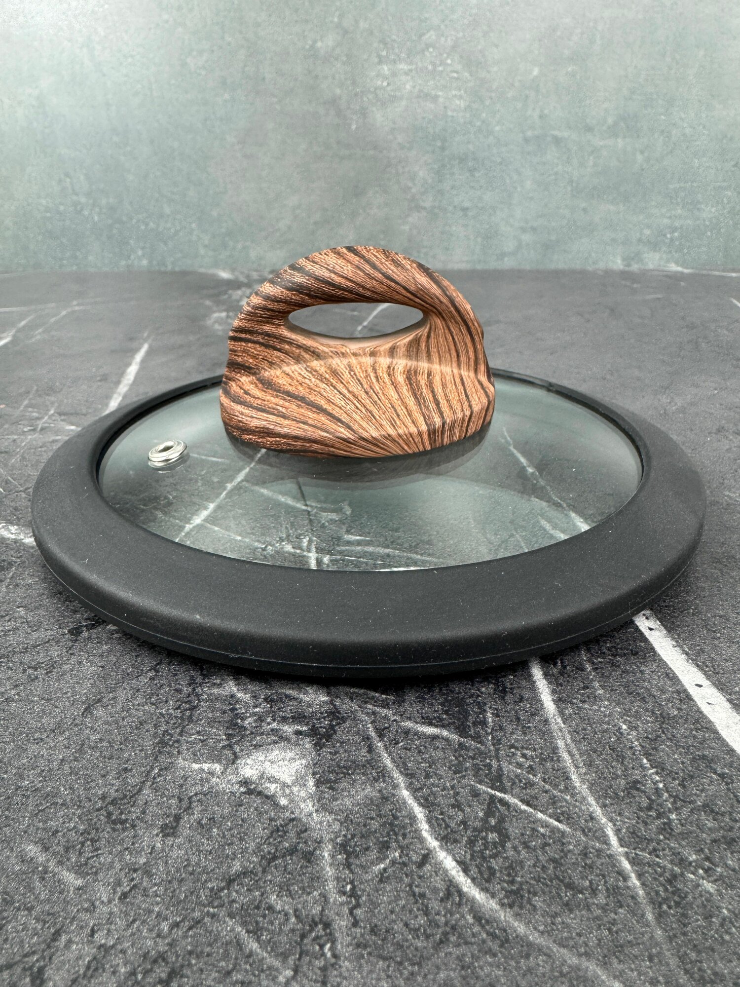 Стеклянная крышка 16см Panairo "WOOD" с ручкой Soft-touch