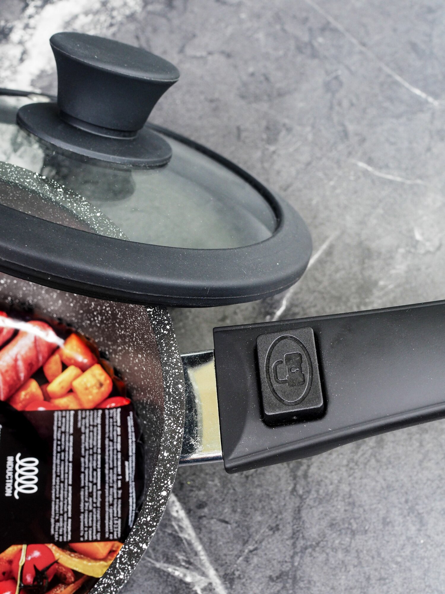 Стеклянная крышка 22 см с силиконовыми ободом и ручкой Panairo