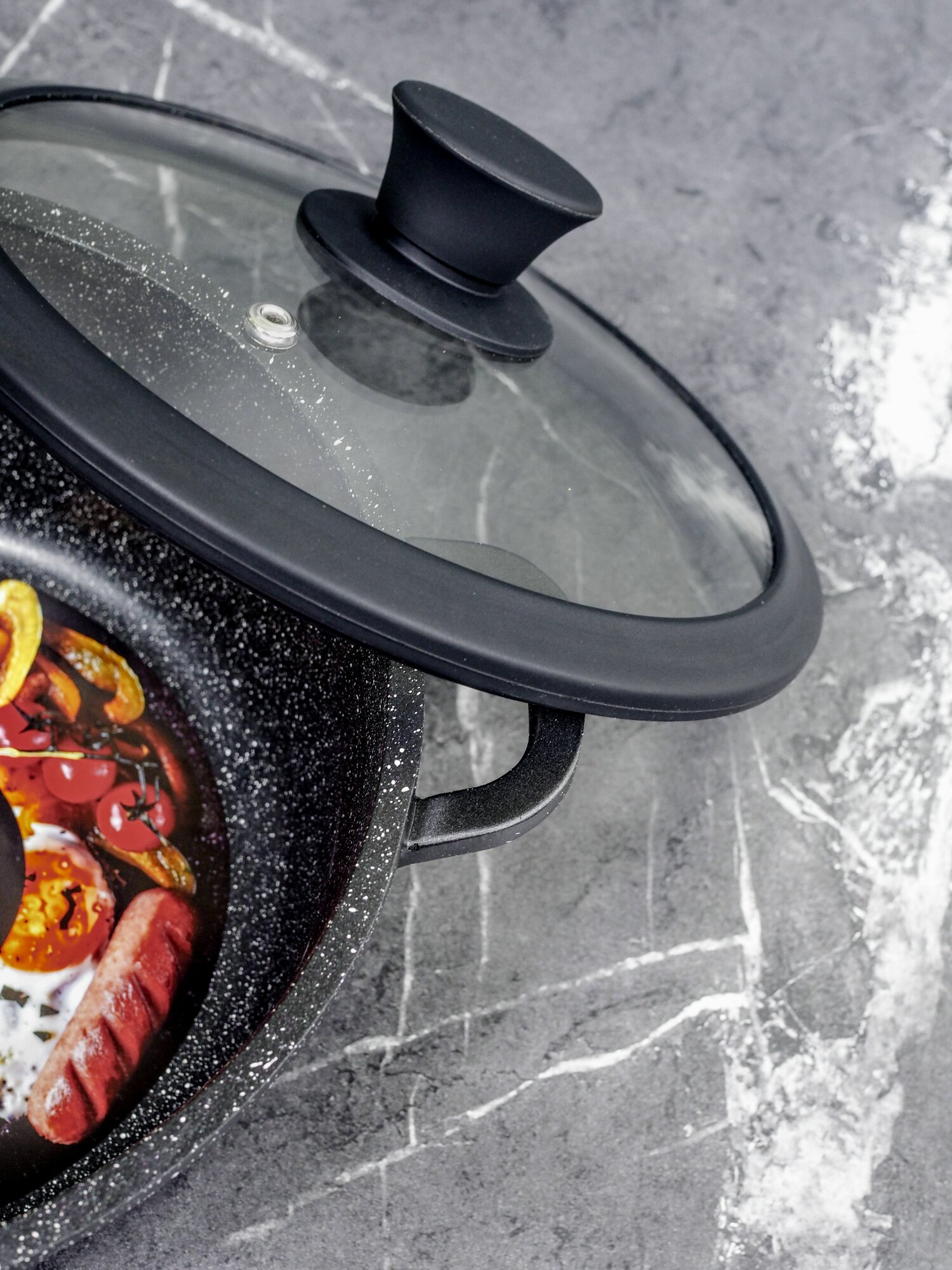Стеклянная крышка 28 см с силиконовыми ободом и ручкой Panairo