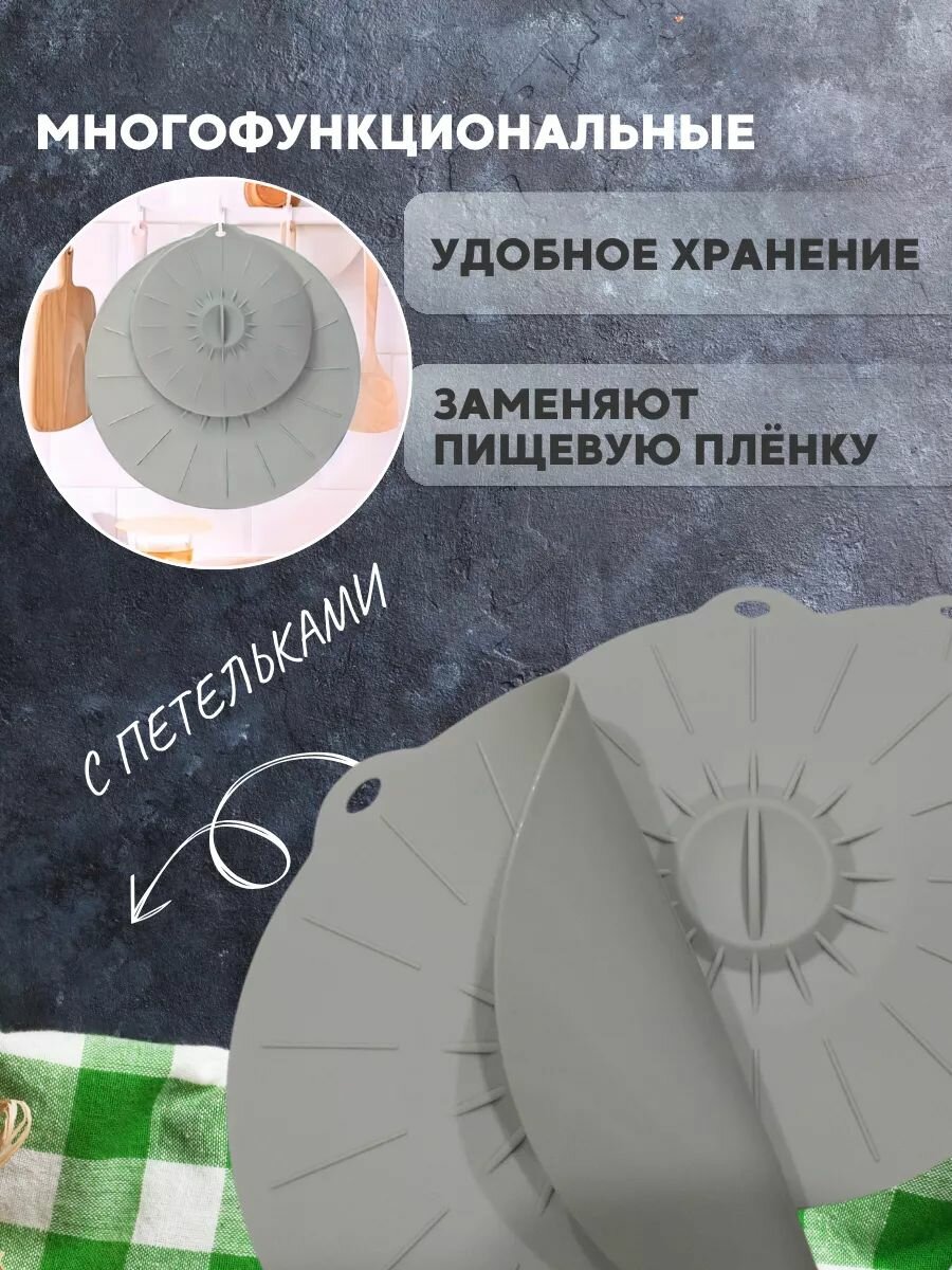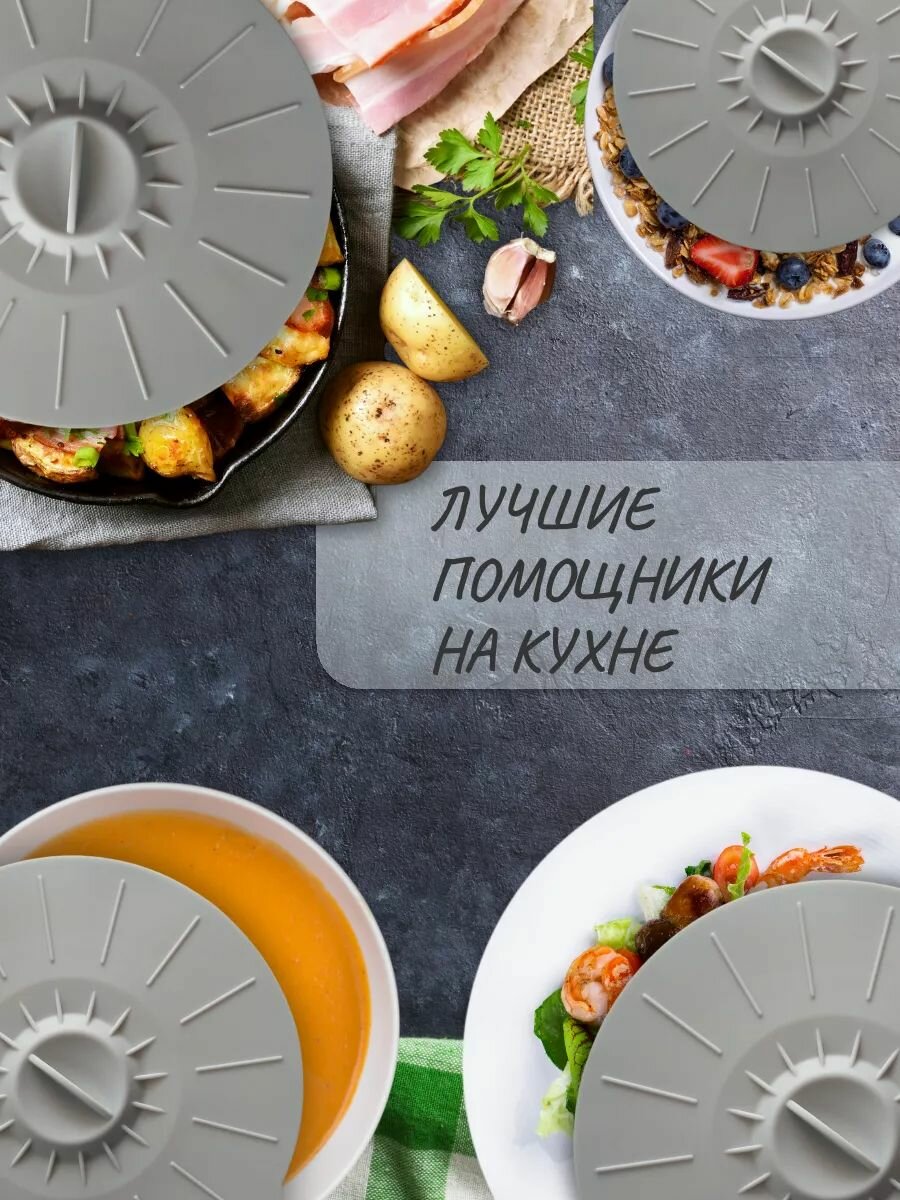 Силиконовые вакуумные, универсальные крышки для посуды. Набор из 3 шт. Светло-серые интересное: