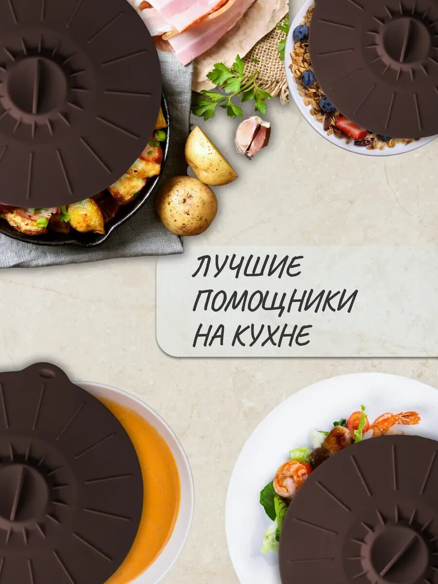 Силиконовые вакуумные, универсальные крышки для посуды. Набор из 4 шт. Коричневые интересное: