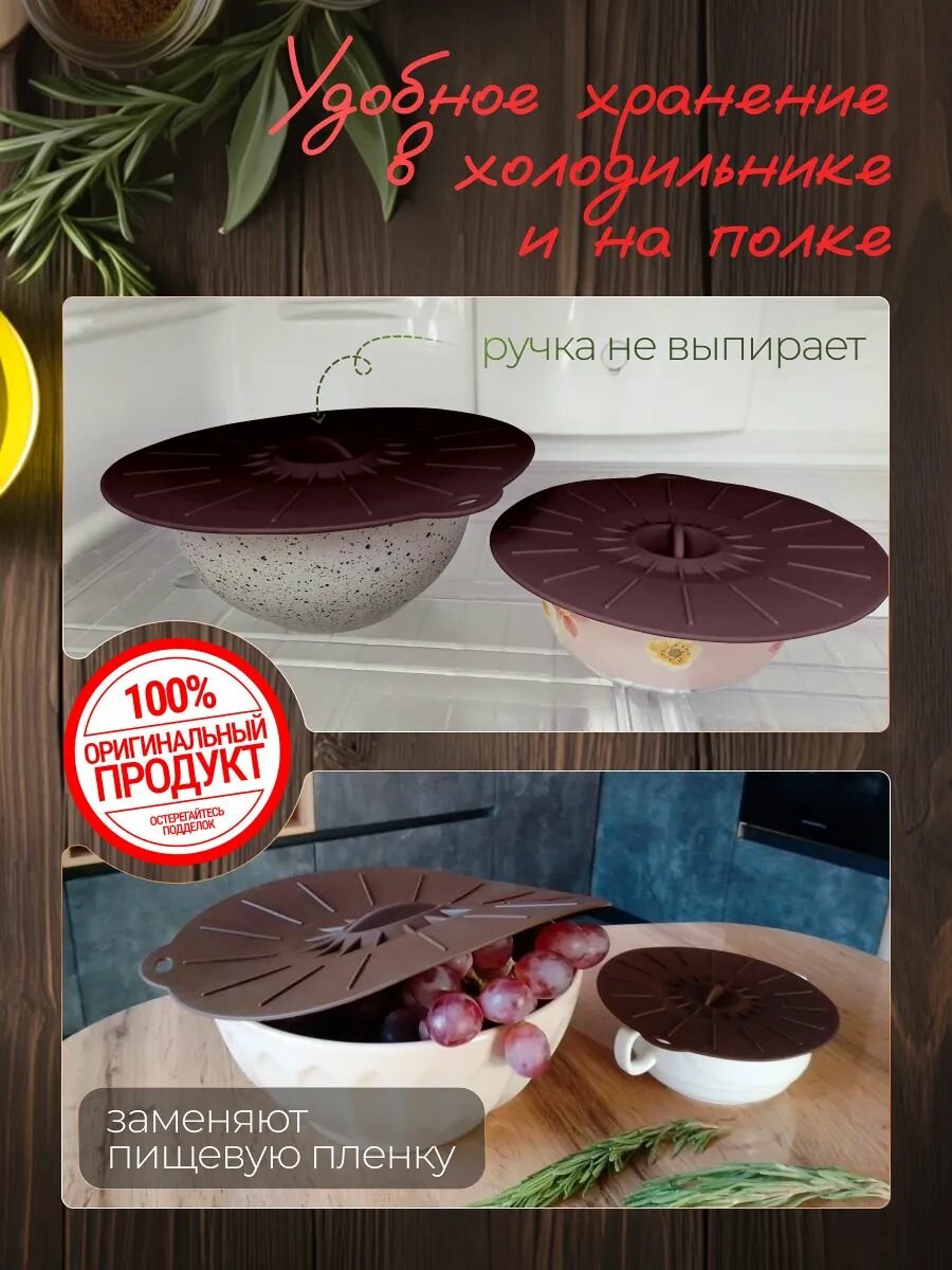 Силиконовые вакуумные, универсальные крышки для посуды. Набор из 3 шт. Коричневые интересное: