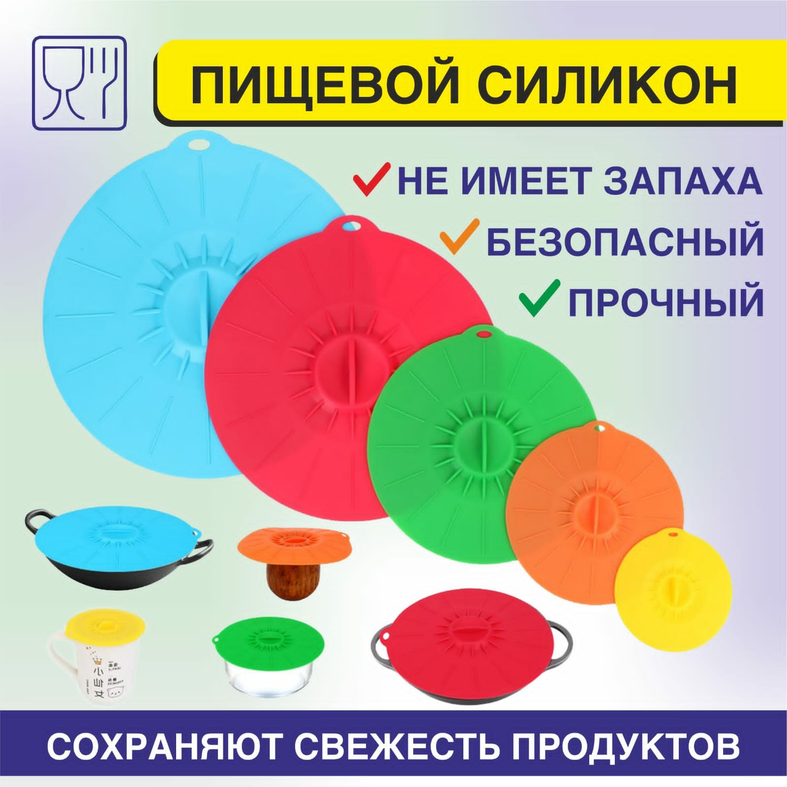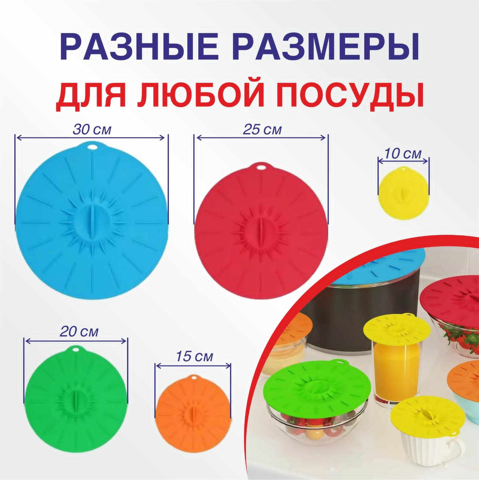 Набор универсальных /герметичных/ вакуумных/ силиконовых крышек для кастрюль, сковородок, мультиварок и посуды. интересное: