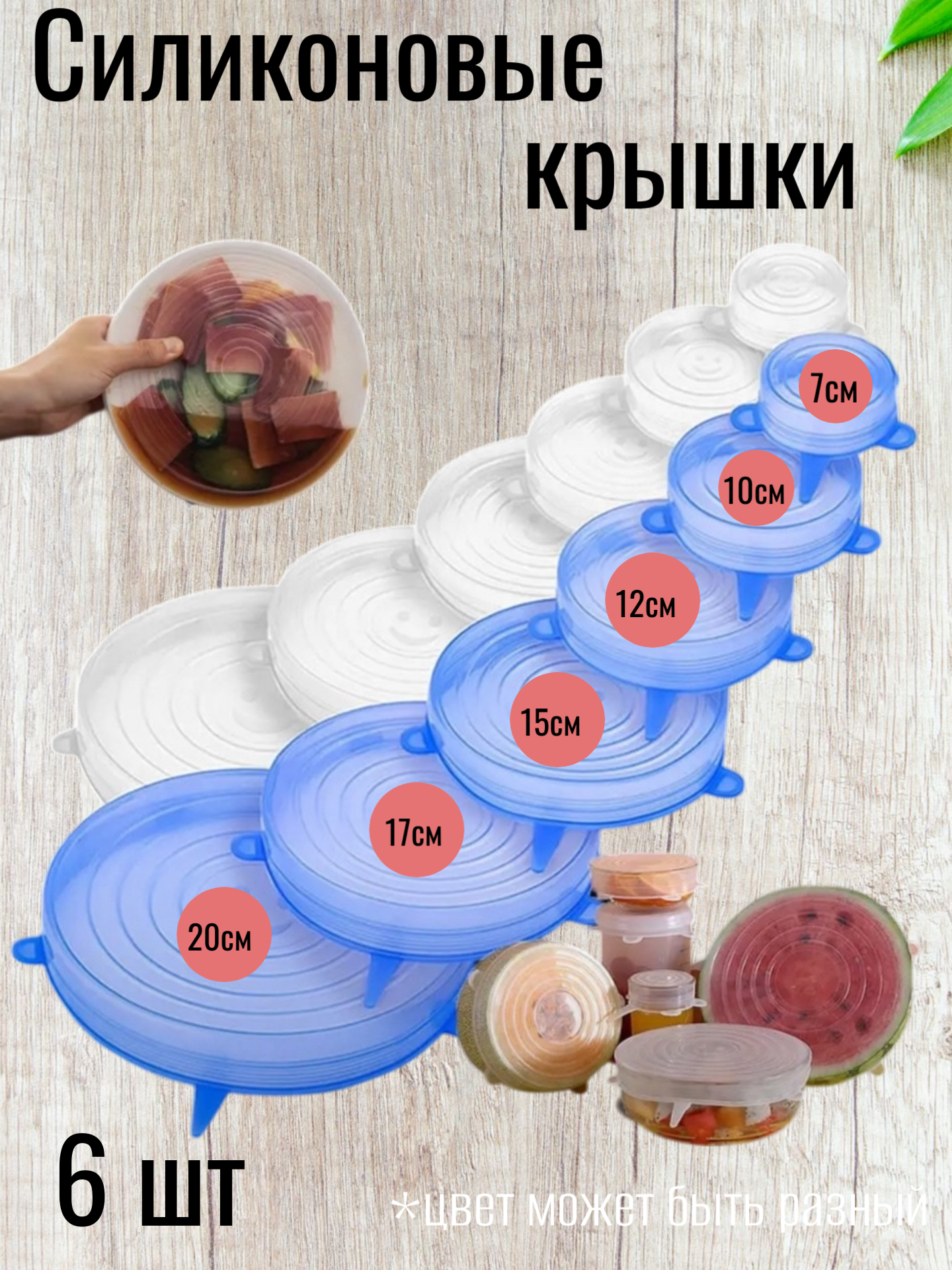 Силиконовые растягивающие многоразовые крышки герметичные 6 шт. интересное: