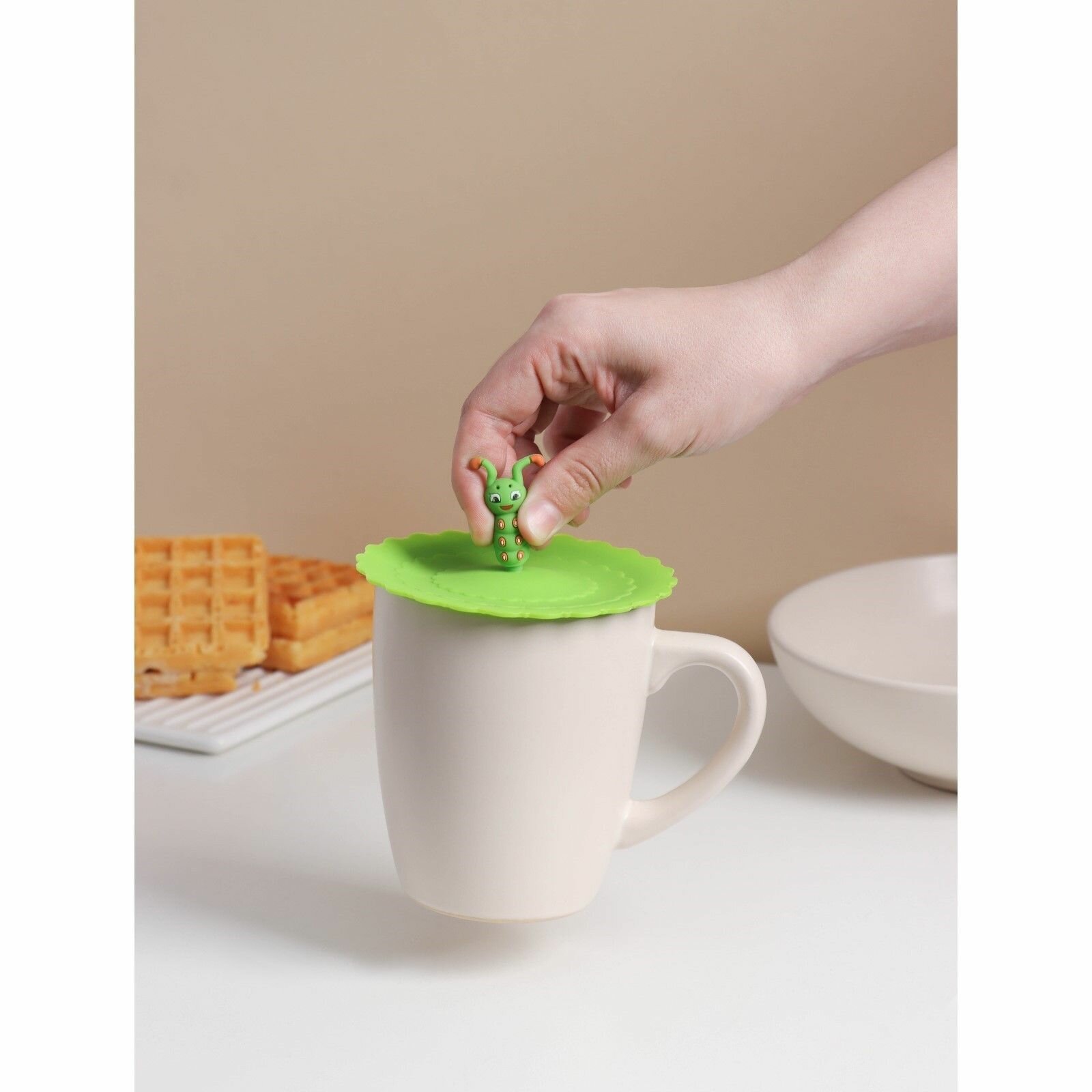 Крышка - непроливайка силиконовая Доляна Гусеничка , d 10 см, цвет зелёный интересное:
