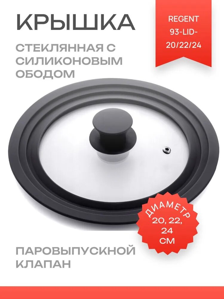 Купить Крышка универсальная REGENT 93-LID-20/22/24, мультиразмер: 20, 22, 24 см