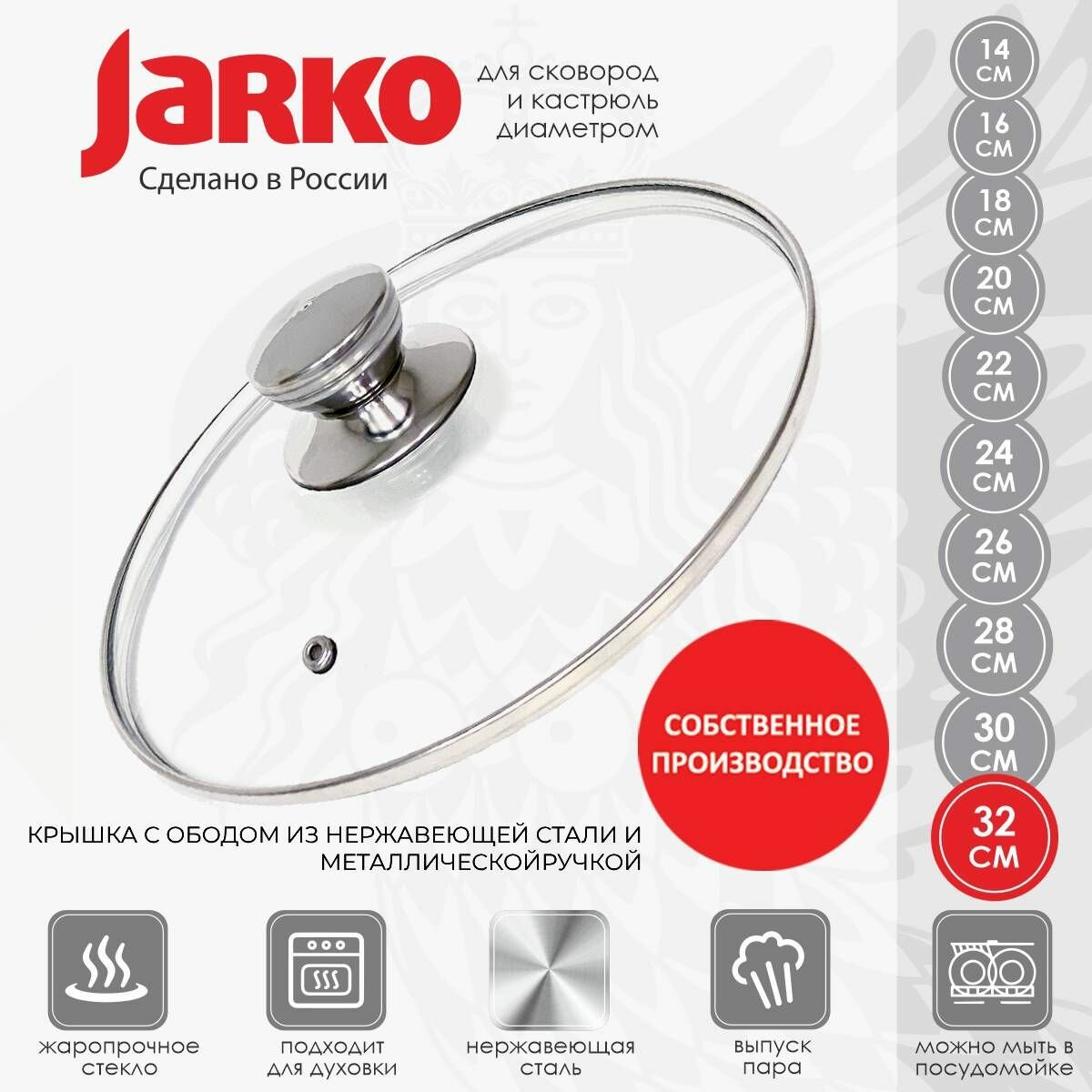 Купить Стеклянная крышка для кастрюль, сковородок 32см металлическая ручка