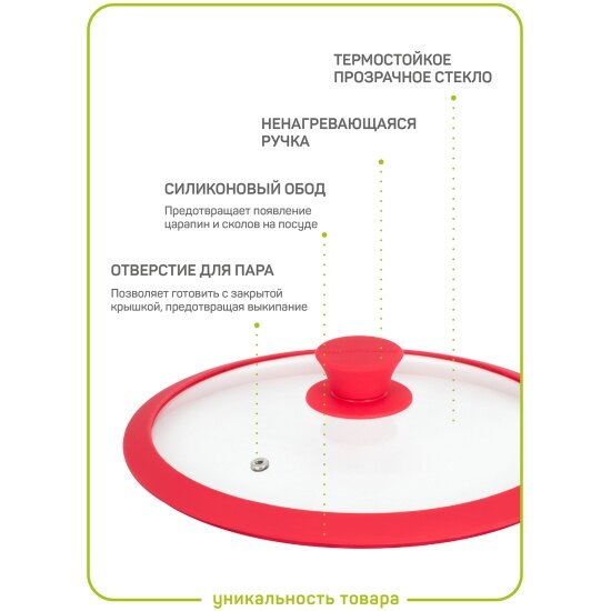 Крышка стеклянная с силиконовым ободком Master House София-28 (60558), красная, 28см интересное: