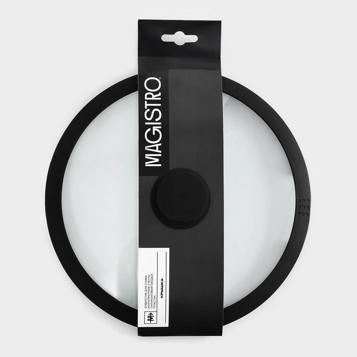 Купить Крышка стеклянная, со сливом, с силиконовым ободком и ручкой Magistro, d=24 см, чёрная