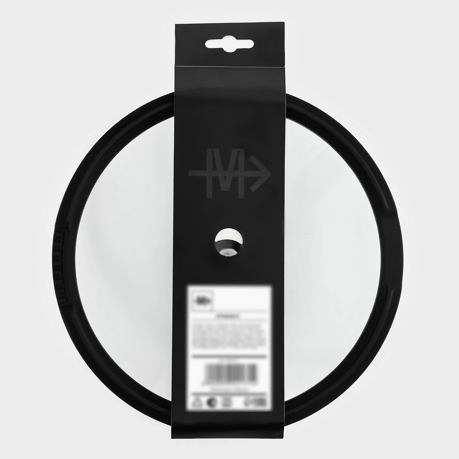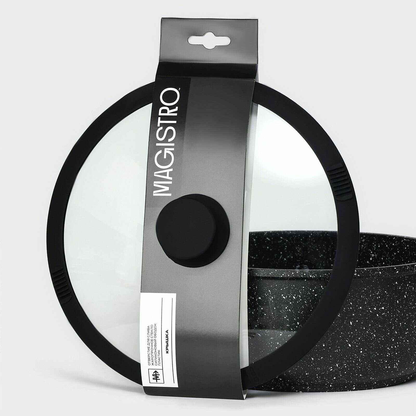 Крышка стеклянная, со сливом, с силиконовым ободком и ручкой Magistro, d=18 см, чёрная