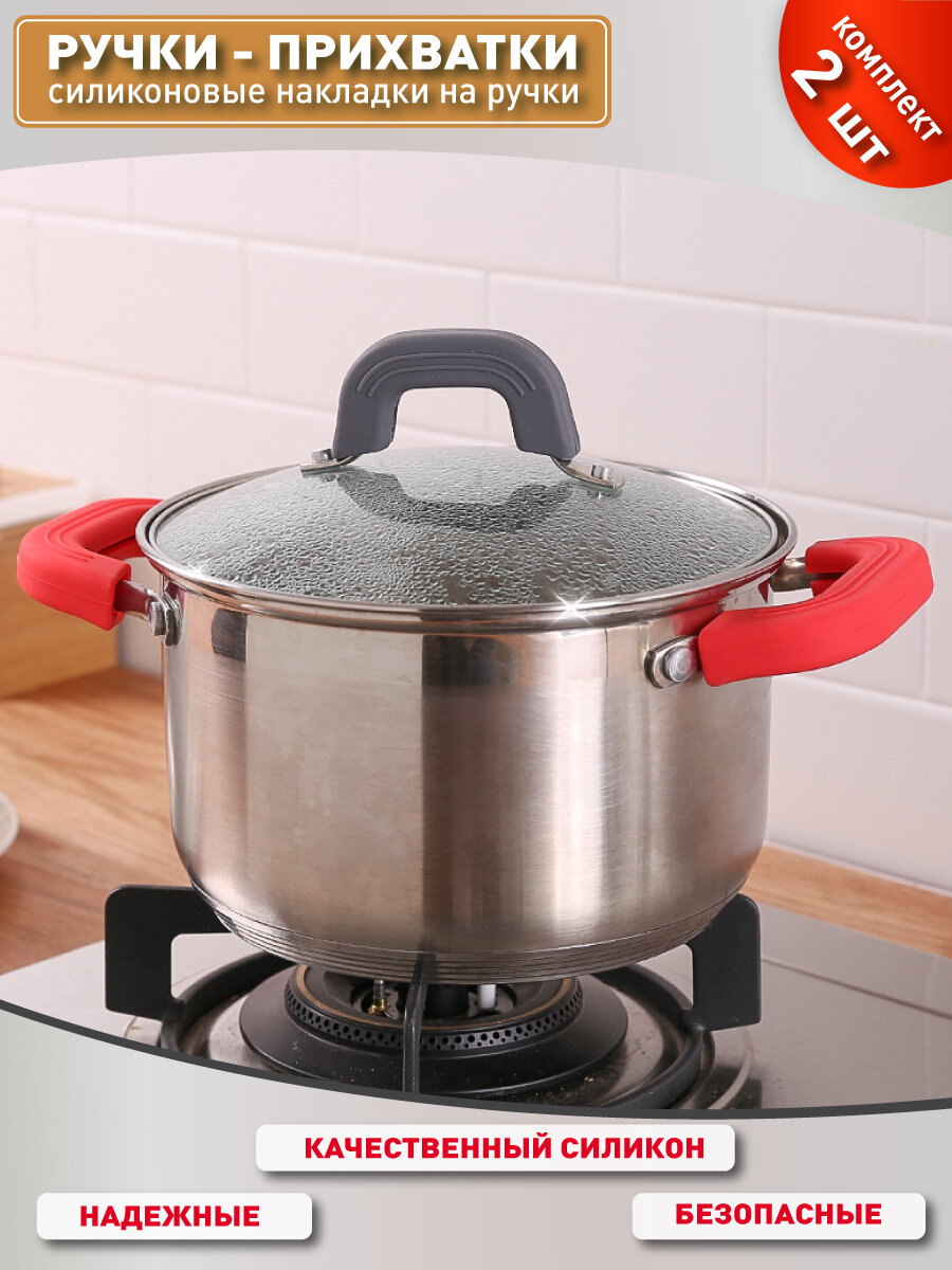 OlLena / Боковые силиконовые ручки для кастрюли, жаропрочные ручки-накладки для казана, красные, 64мм