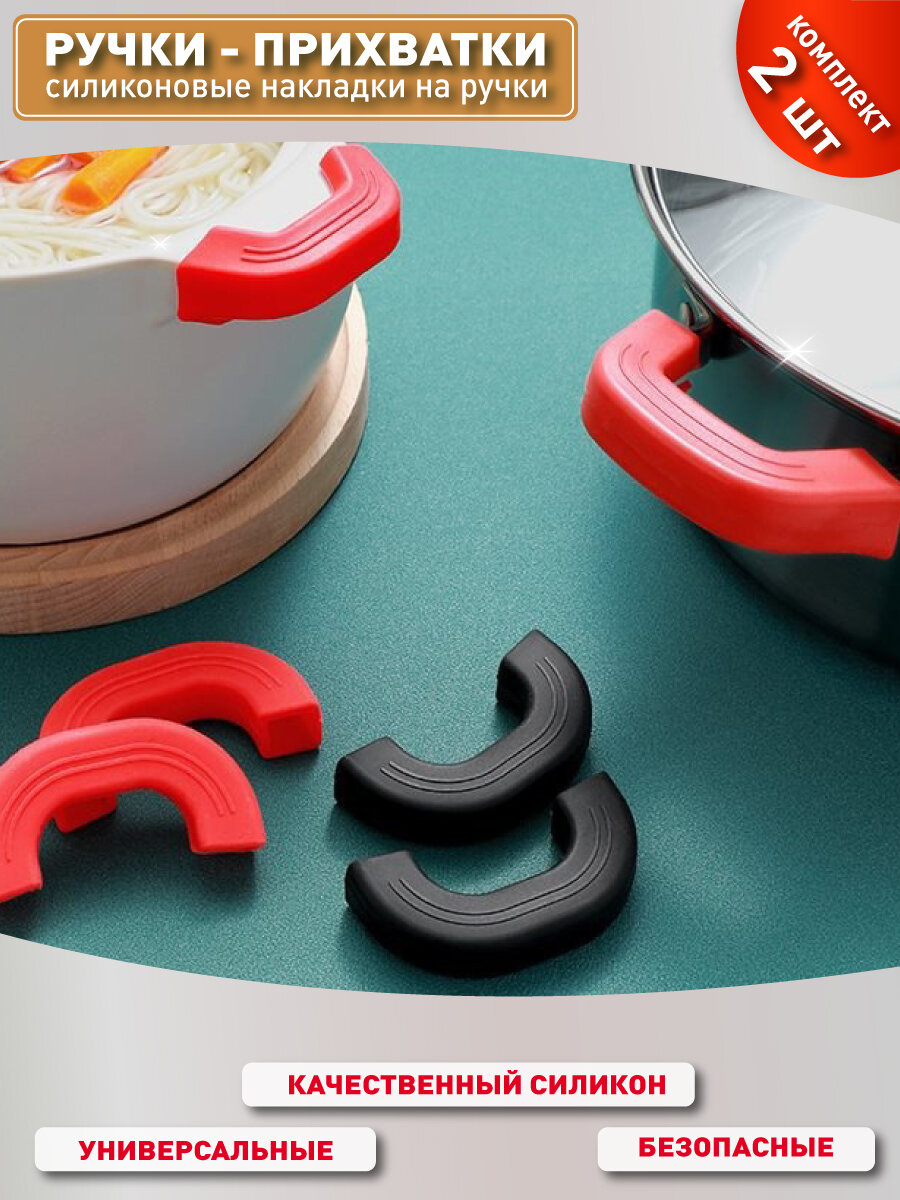 OlLena / Боковые силиконовые ручки для кастрюли, жаропрочные ручки-накладки для казана, красные, 91мм