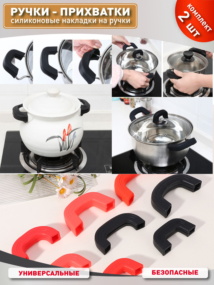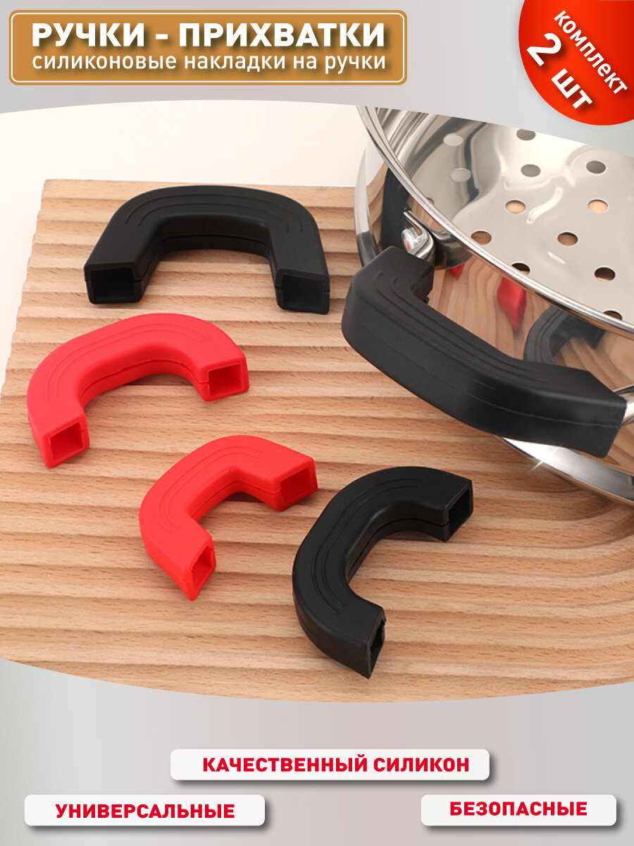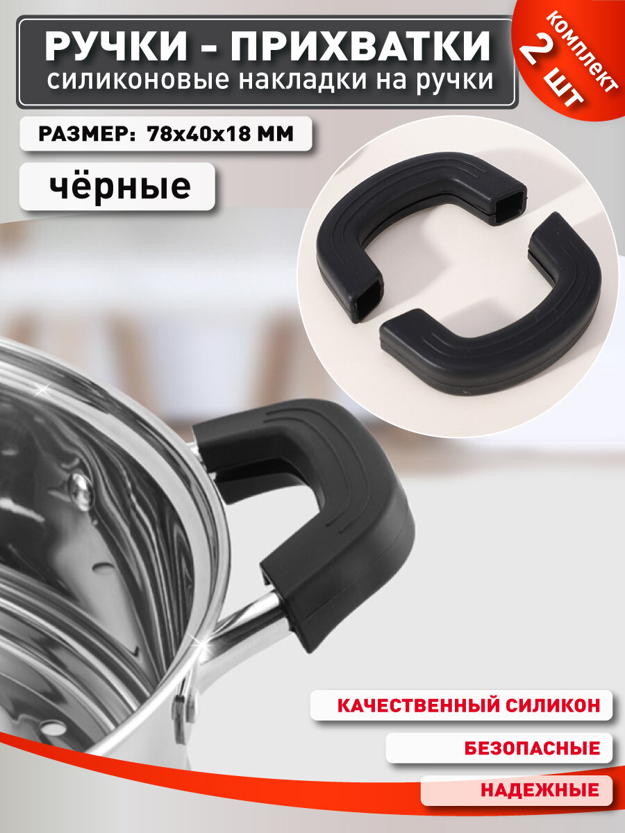 Купить OlLena / Боковые силиконовые ручки для кастрюли, универсальные, жаропрочные ручки-накладки для казана, черные, 79мм